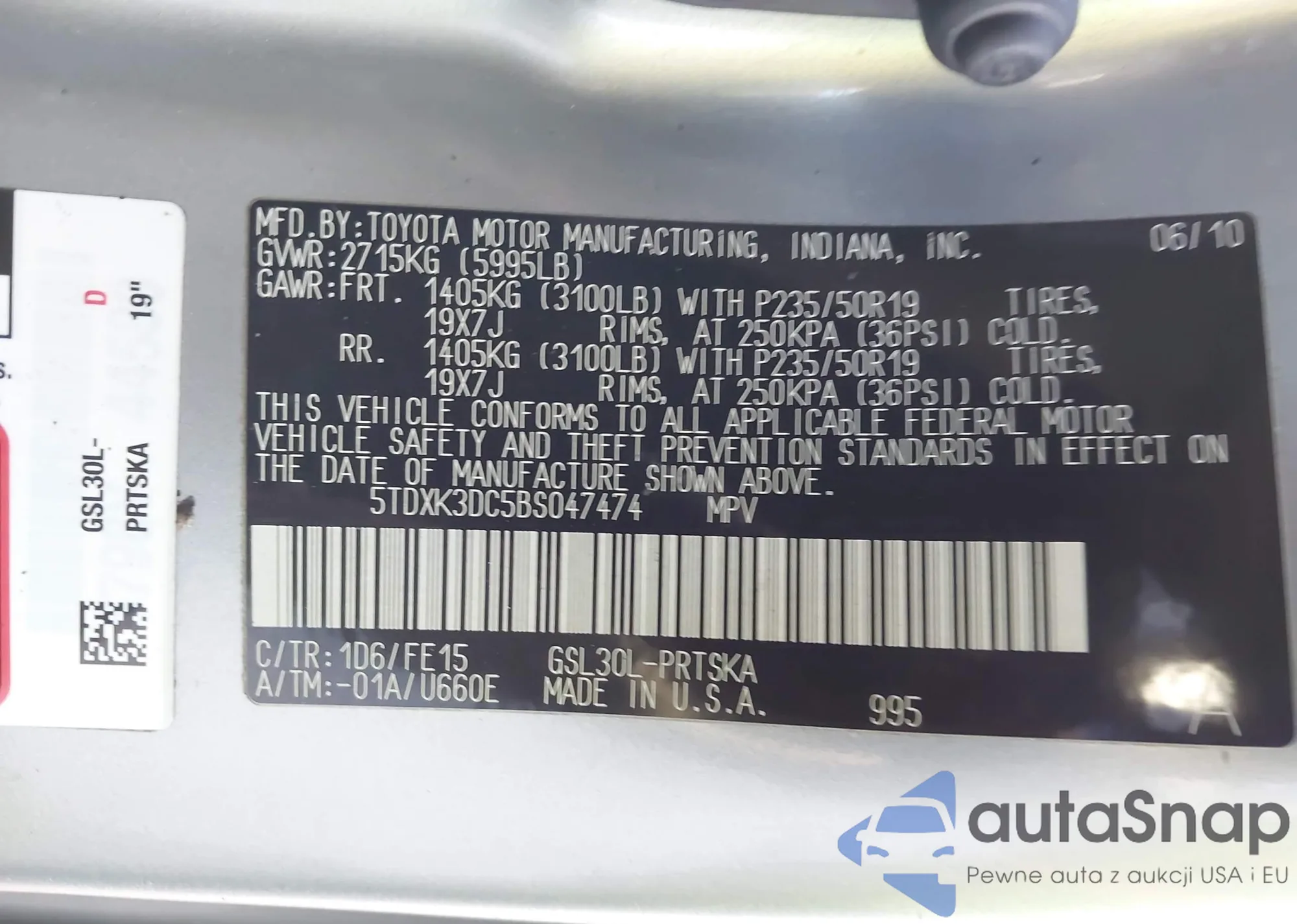 • VIN 5TDXK3DC5BS047474