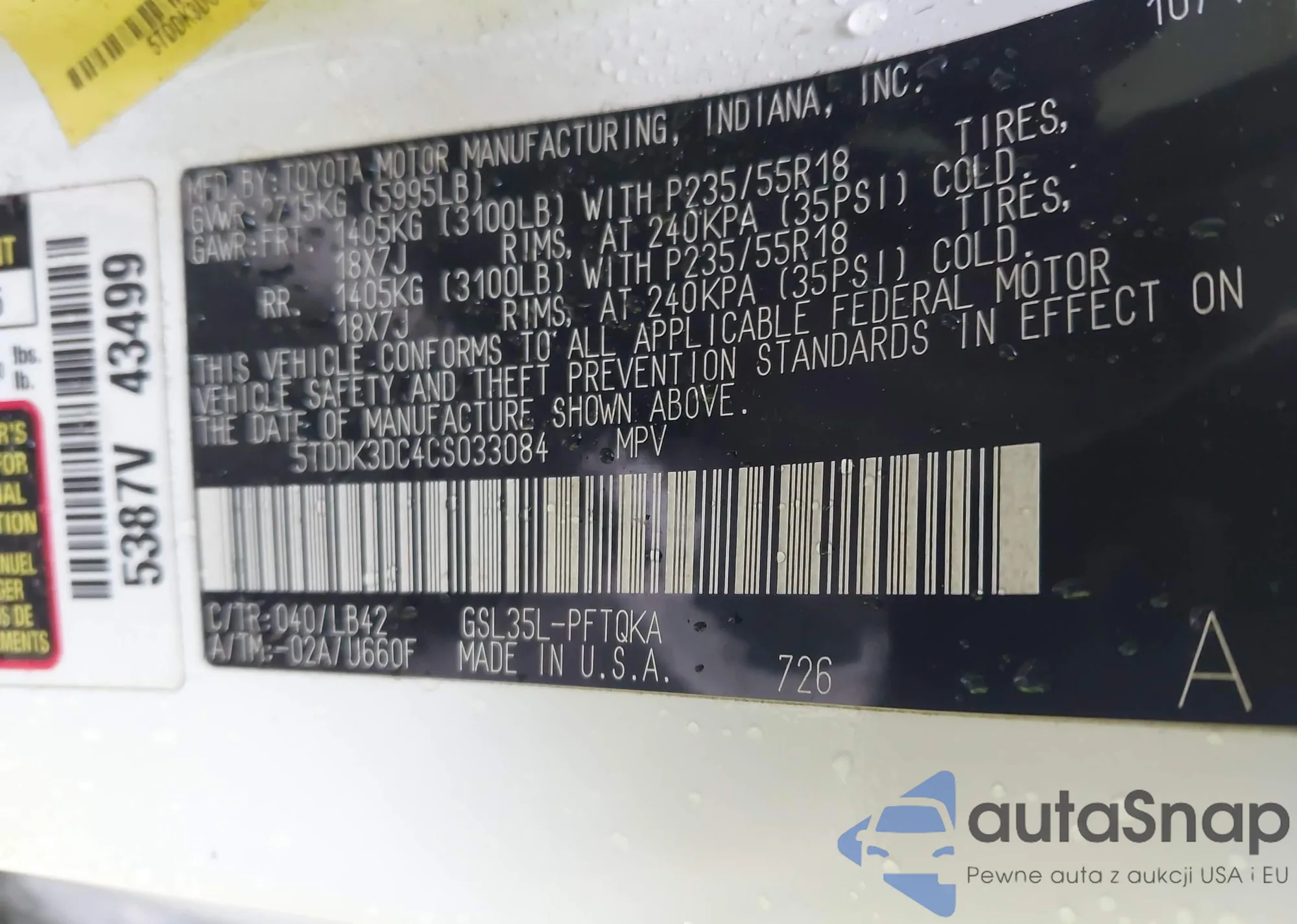 • VIN 5TDKK3DC8CS240083