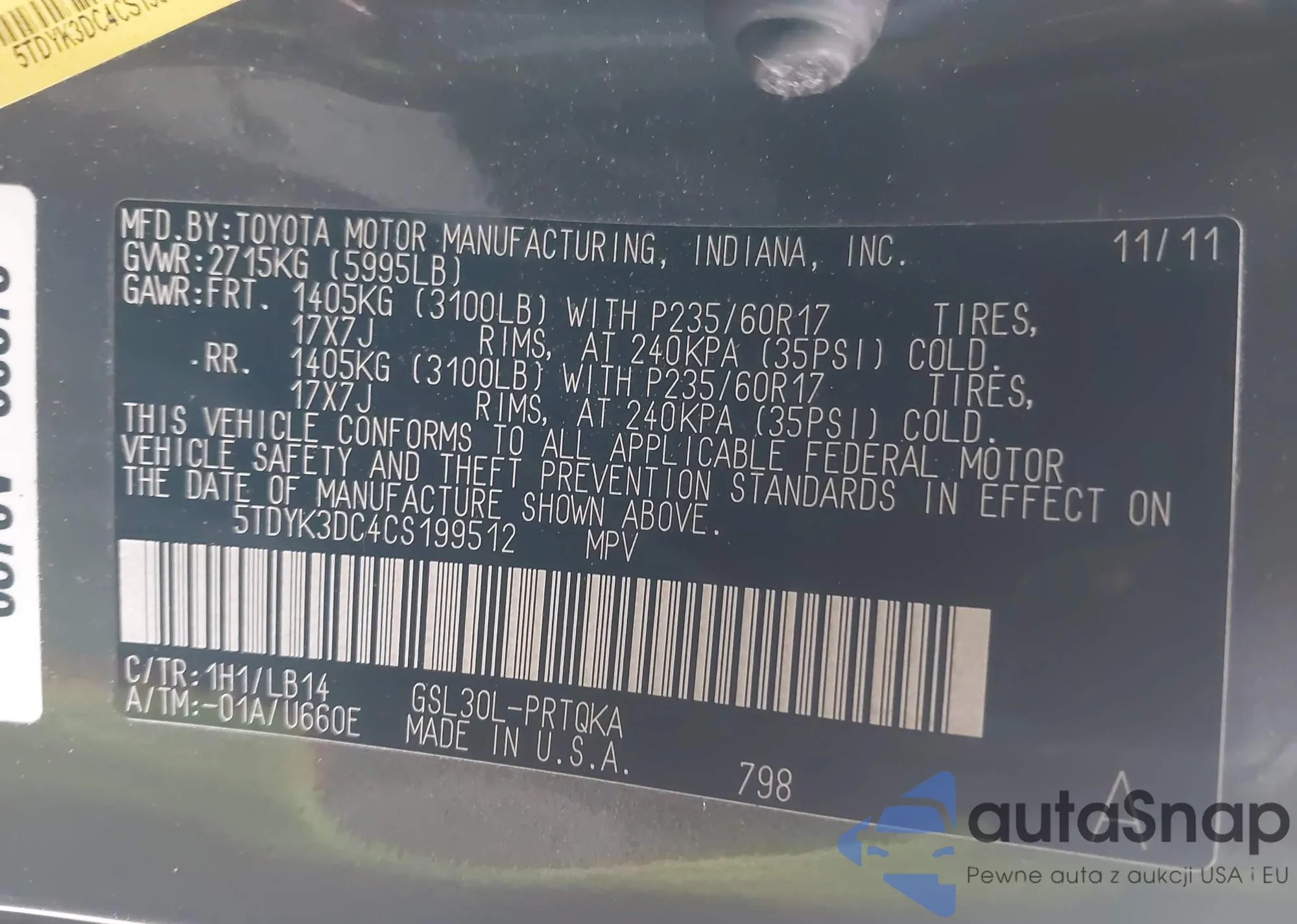 • VIN 5TDYK3DC4CS199512
