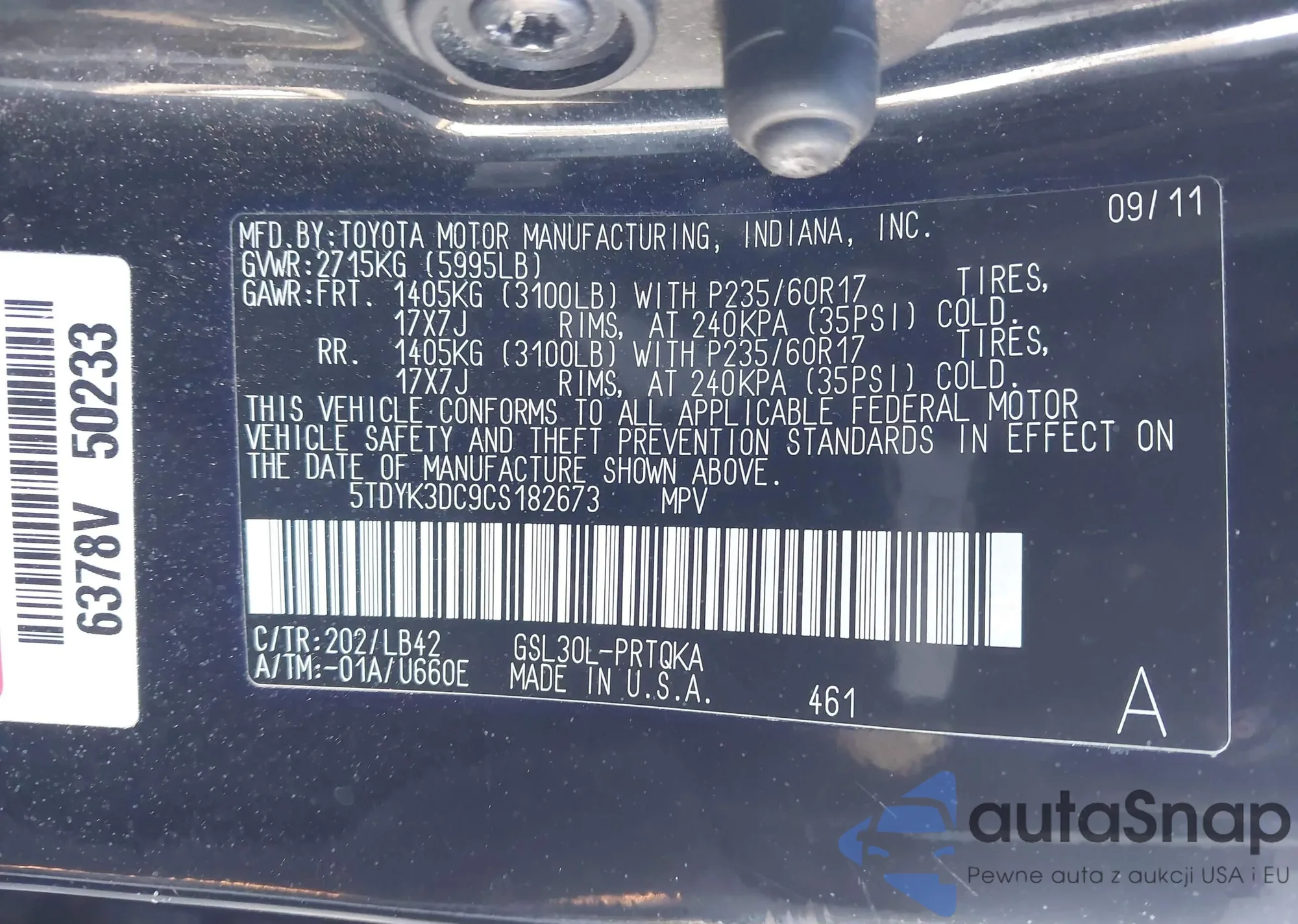• VIN 5TDYK3DC9CS182673