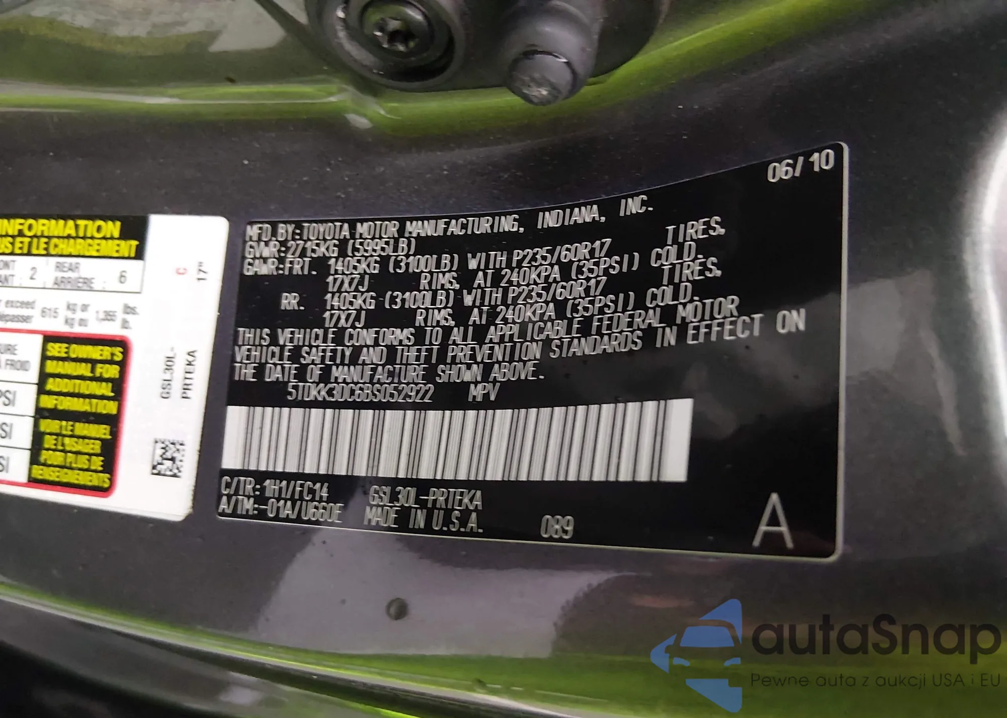 • VIN 5TDKK3DC6BS052922
