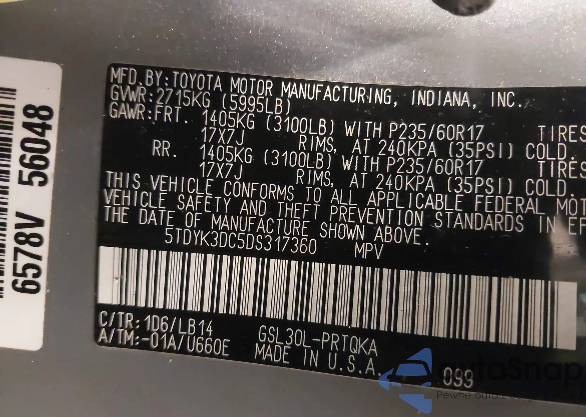• VIN 5TDYK3DC5DS317360