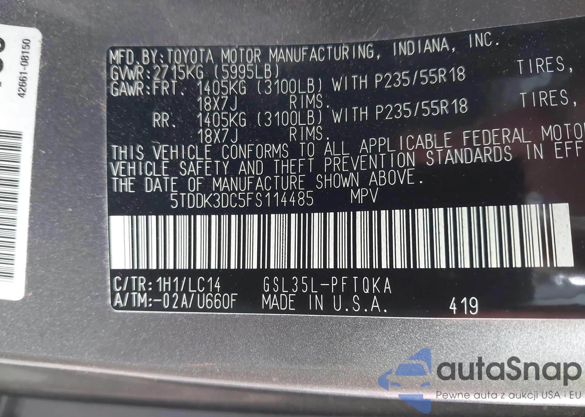 LOT: 43198641 VIN: 5TDDK3DC5FS114485