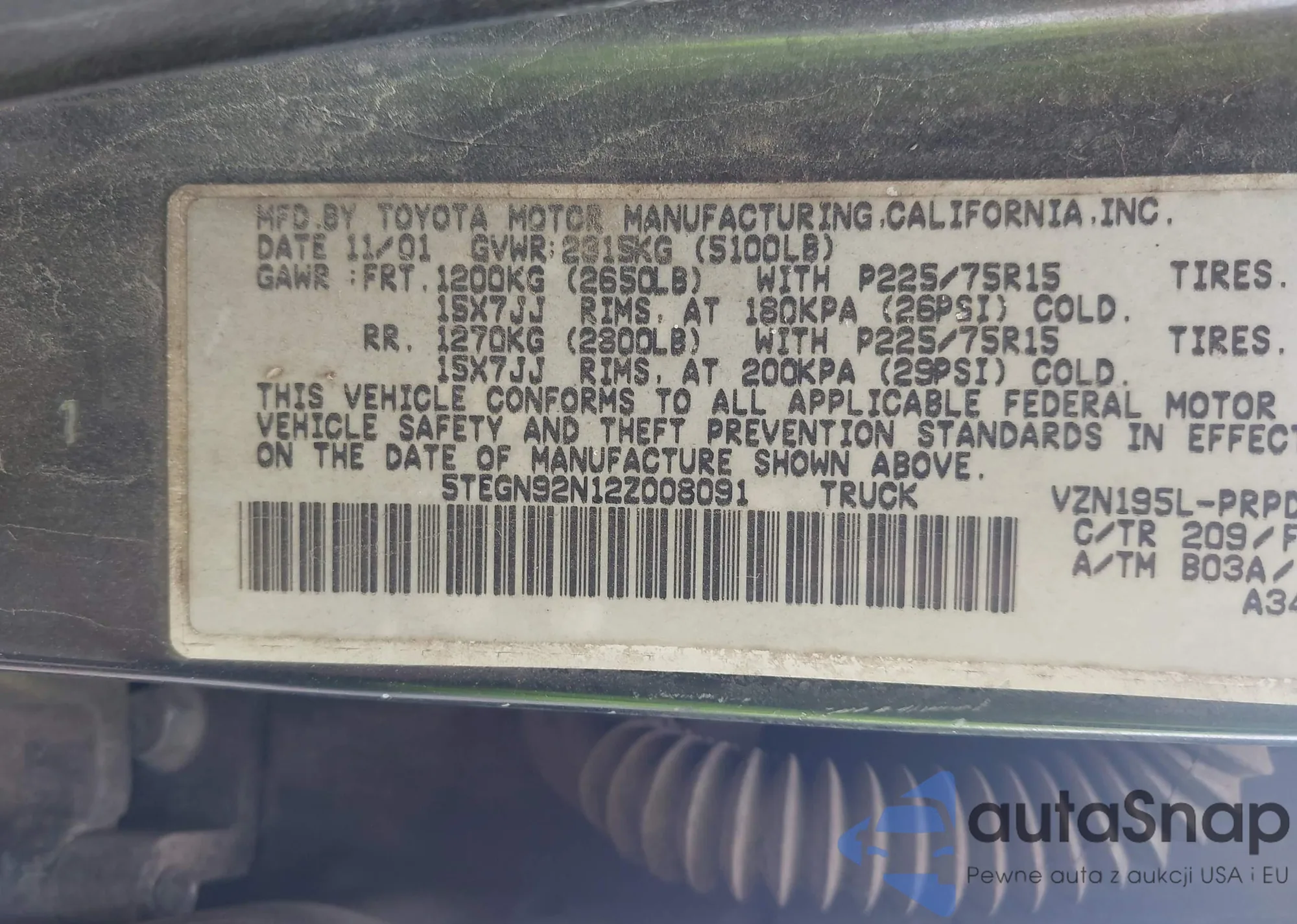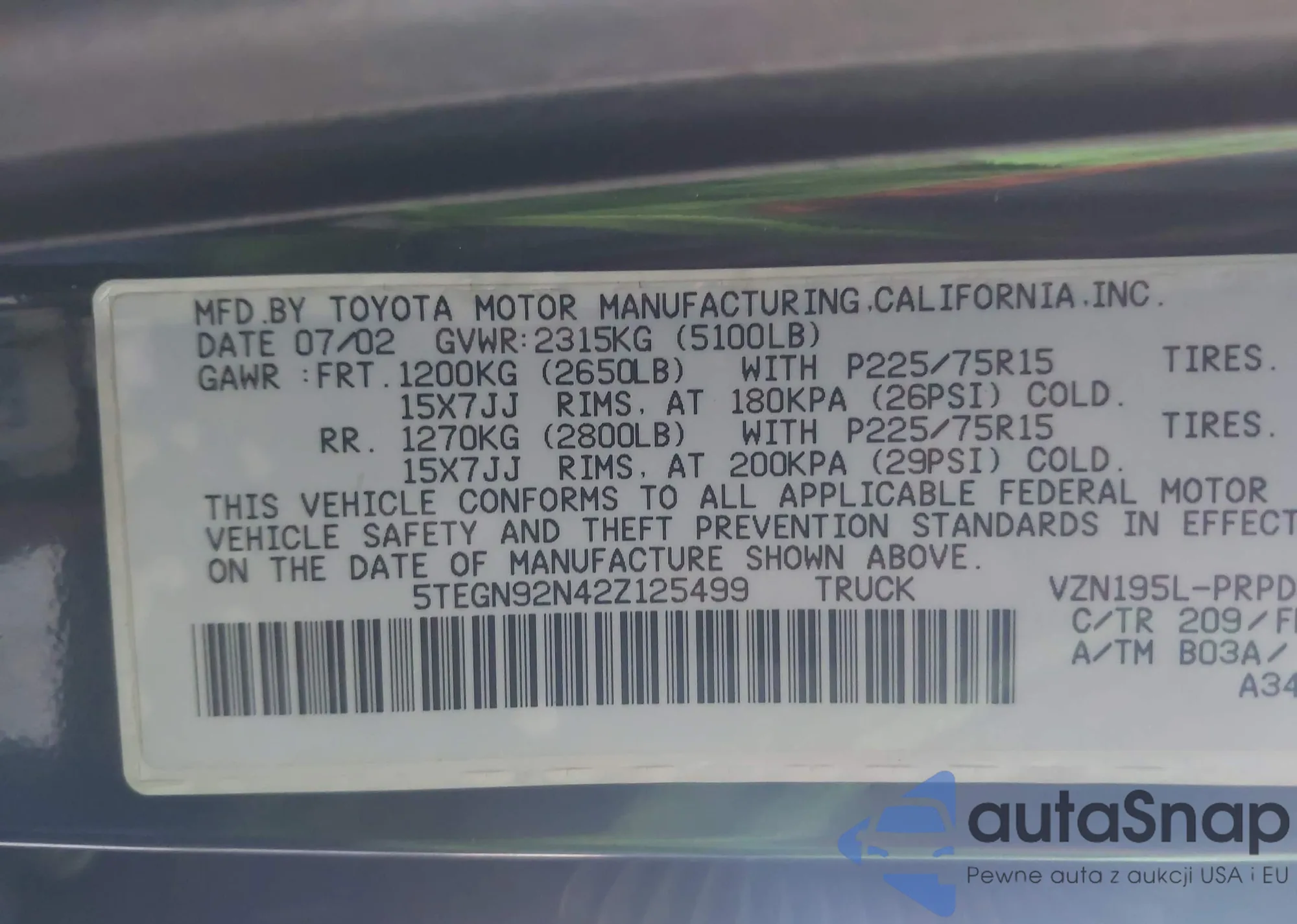 LOT: 91835955 VIN: 5TEWN72N32Z119189