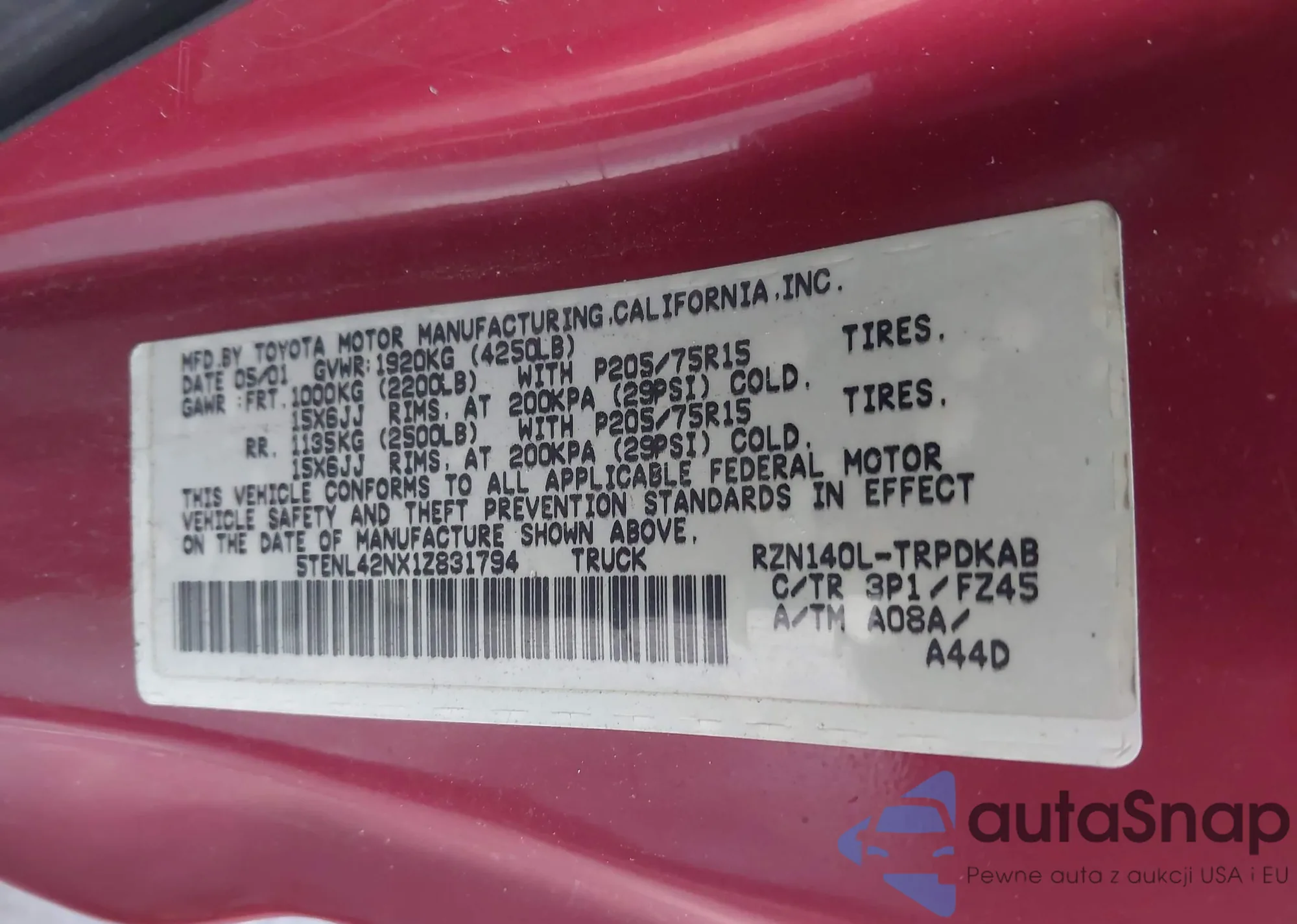 • VIN 4TASN92N5YZ657757