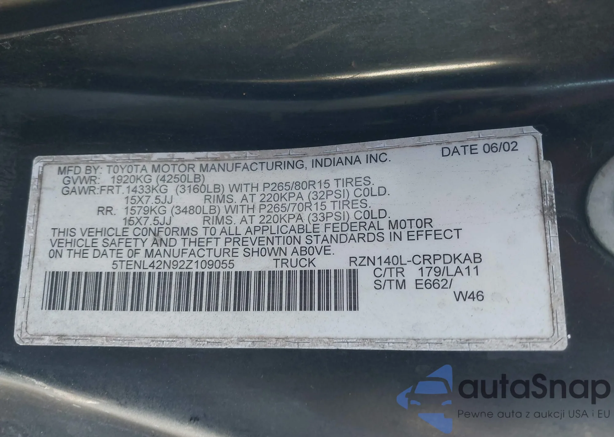 LOT: 43890028 VIN: 5TEWM72N22Z058307