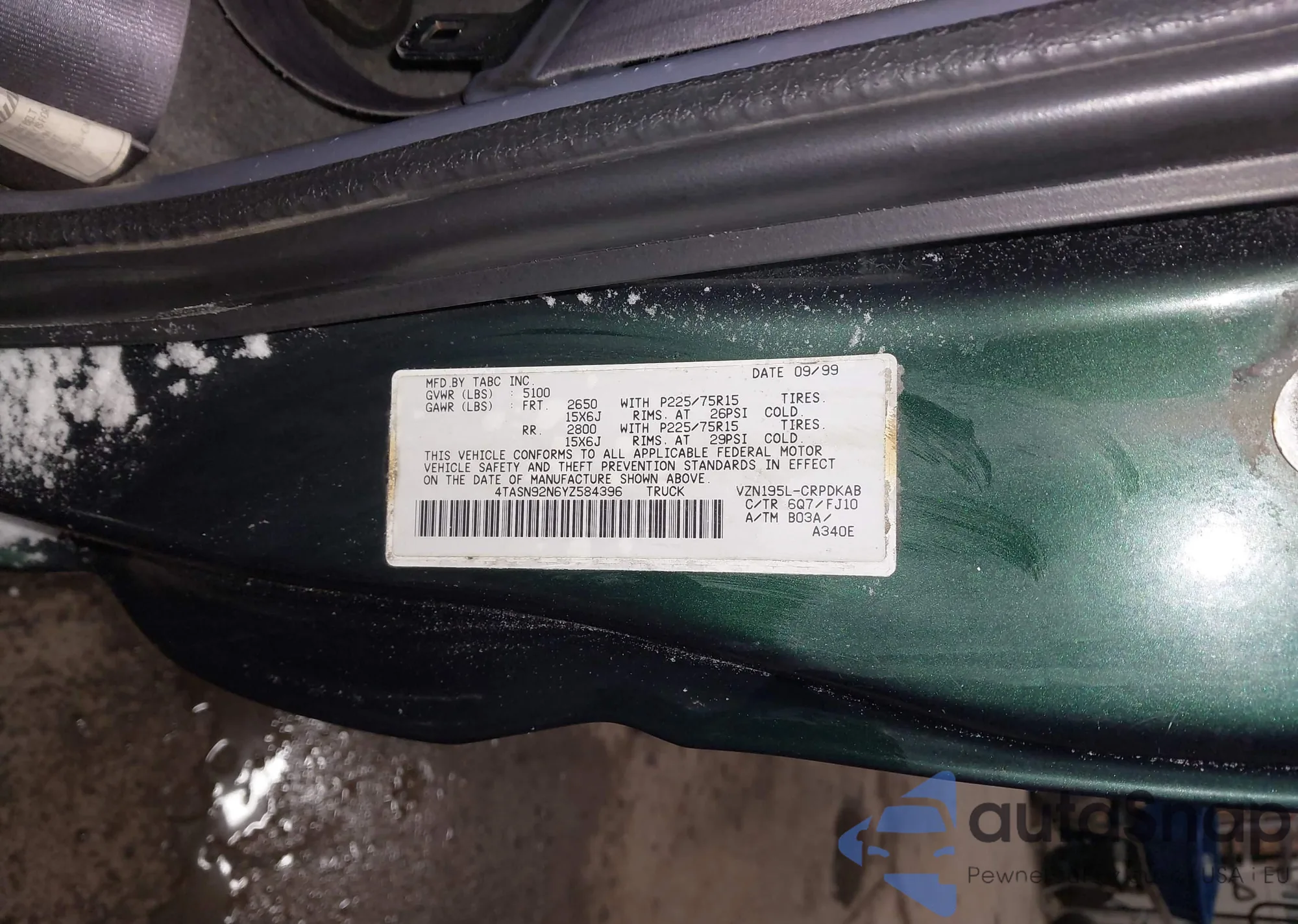 • VIN 4TASN92N6YZ584396