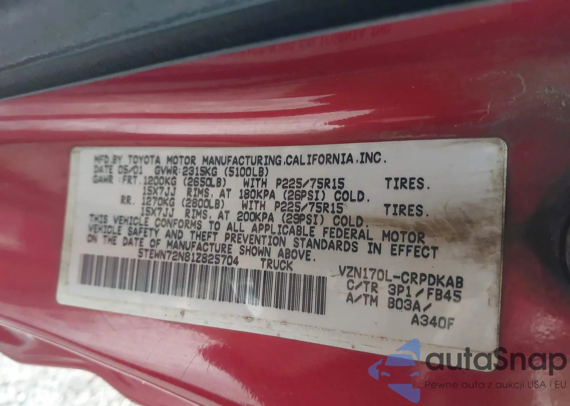 • VIN 5TEWN72N81Z825704