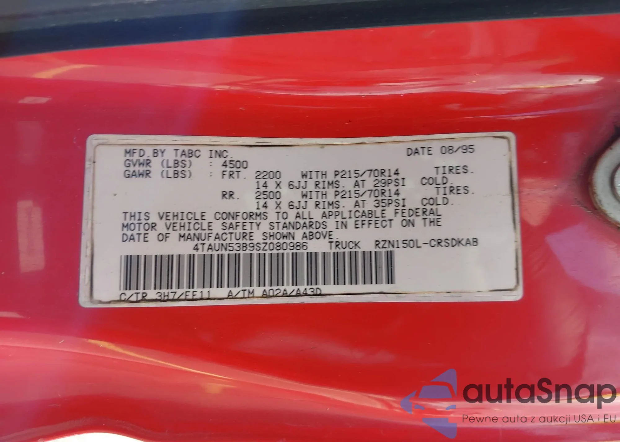 LOT: 44642877 VIN: 4TAVN73F3SZ052474