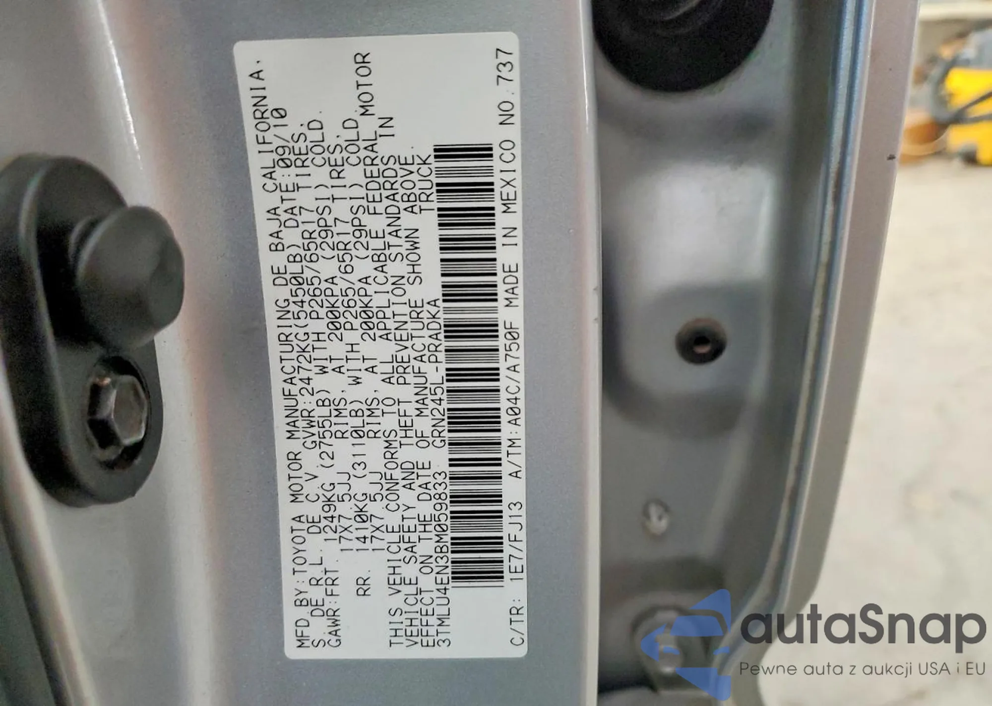 • VIN 3TMLU4EN3BM059833