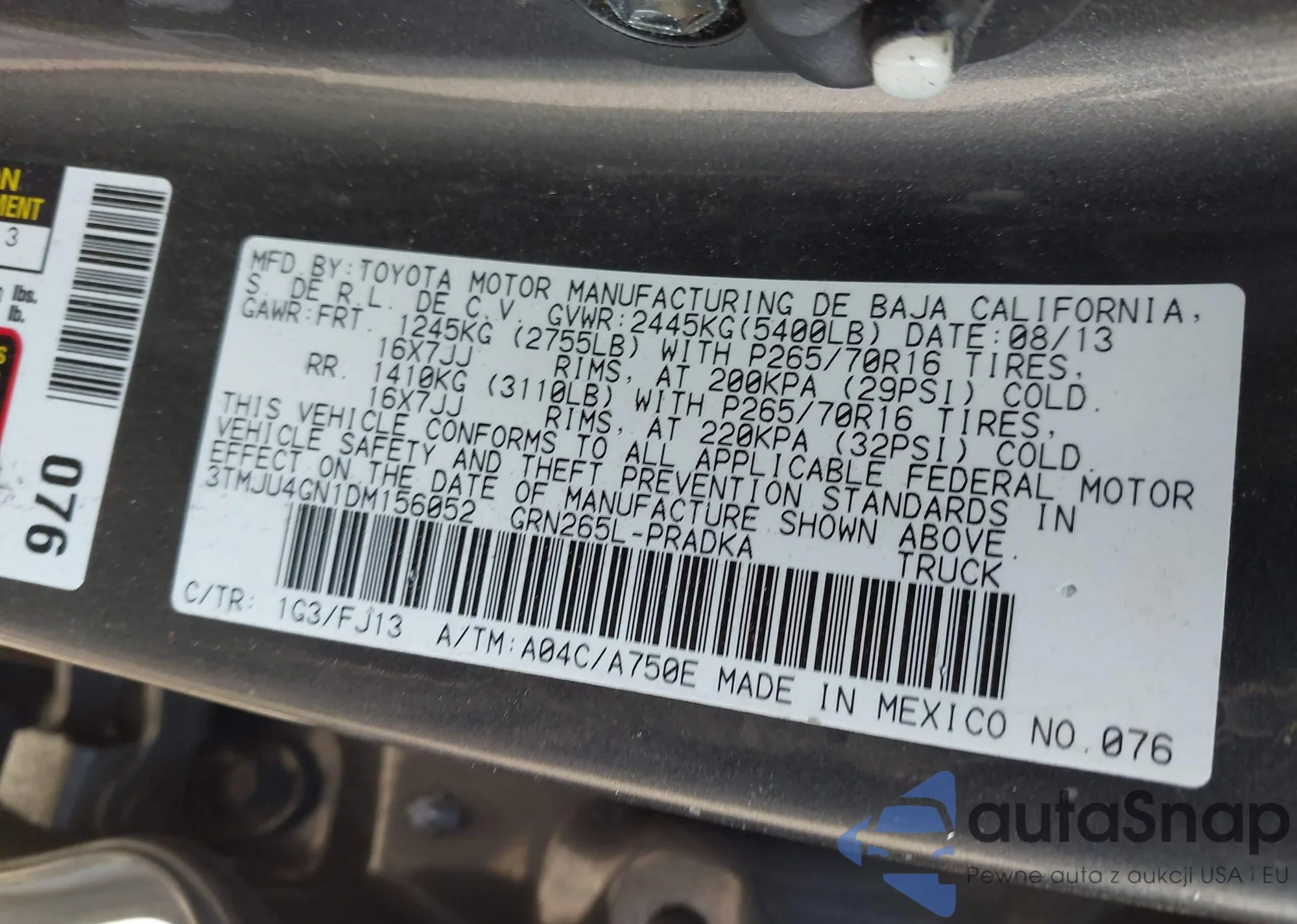 • VIN 3TMJU4GN1DM156052
