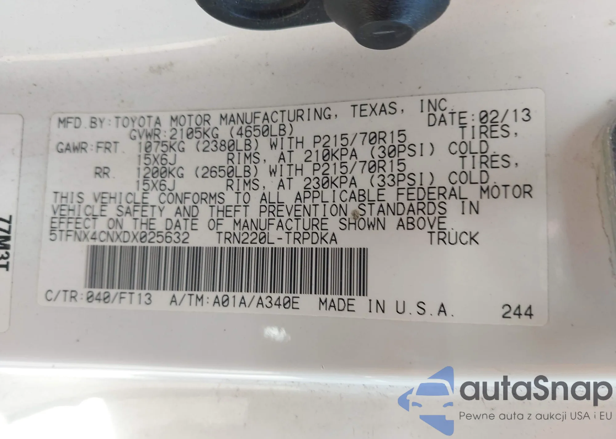 • VIN 5TFNX4CNXDX025632