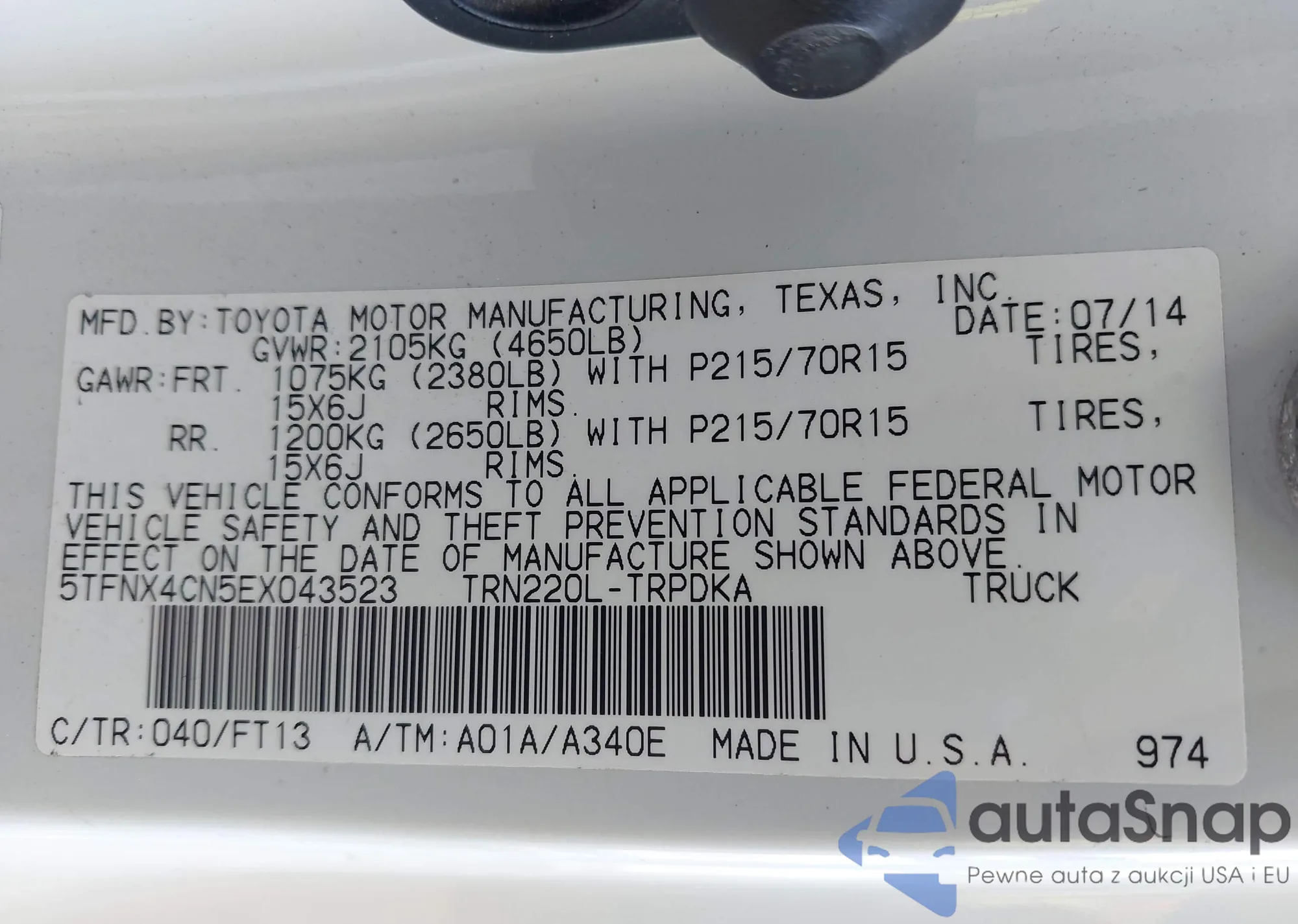 • VIN 5TFNX4CN5EX043523