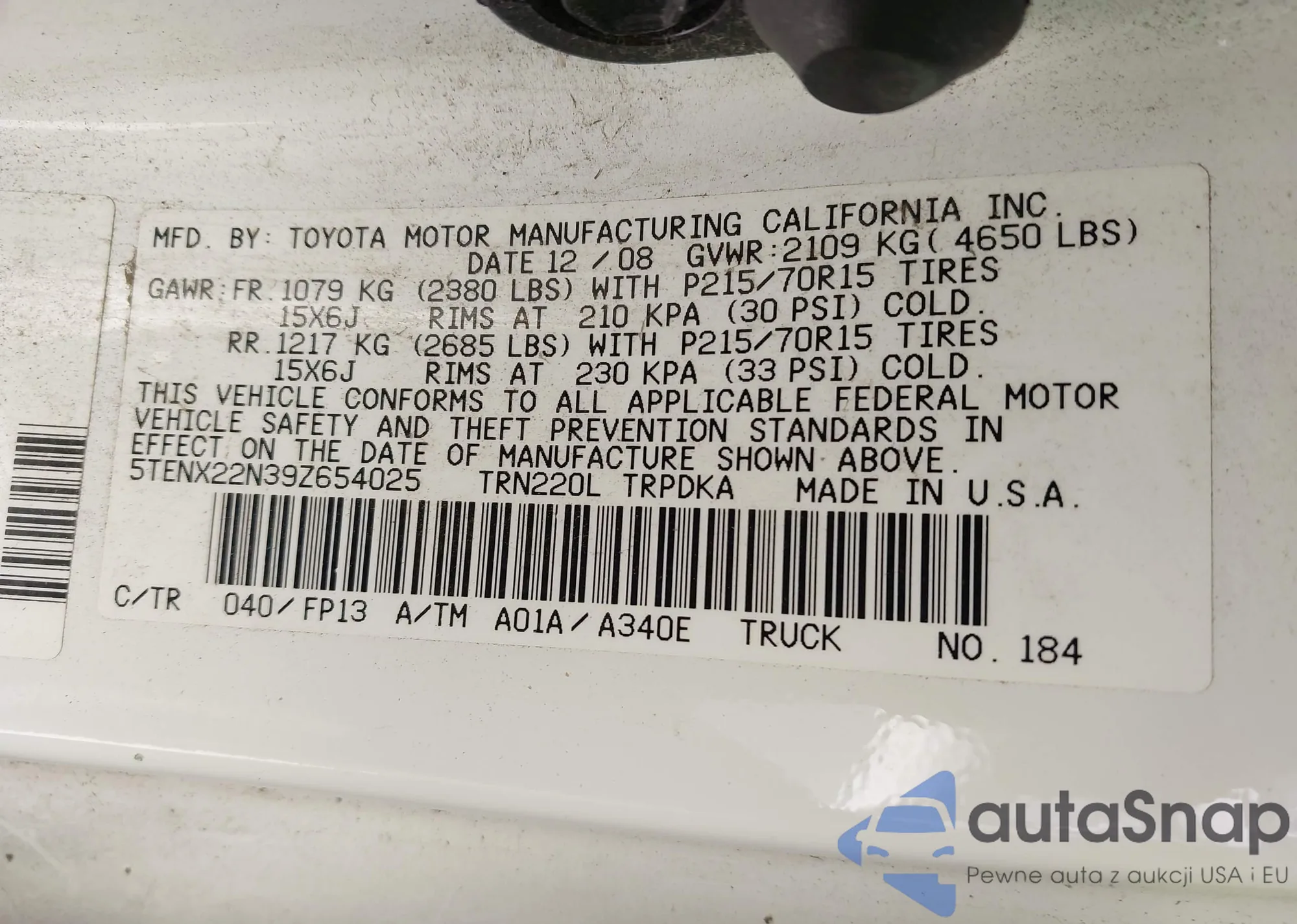 • VIN 5TENX22N39Z654025