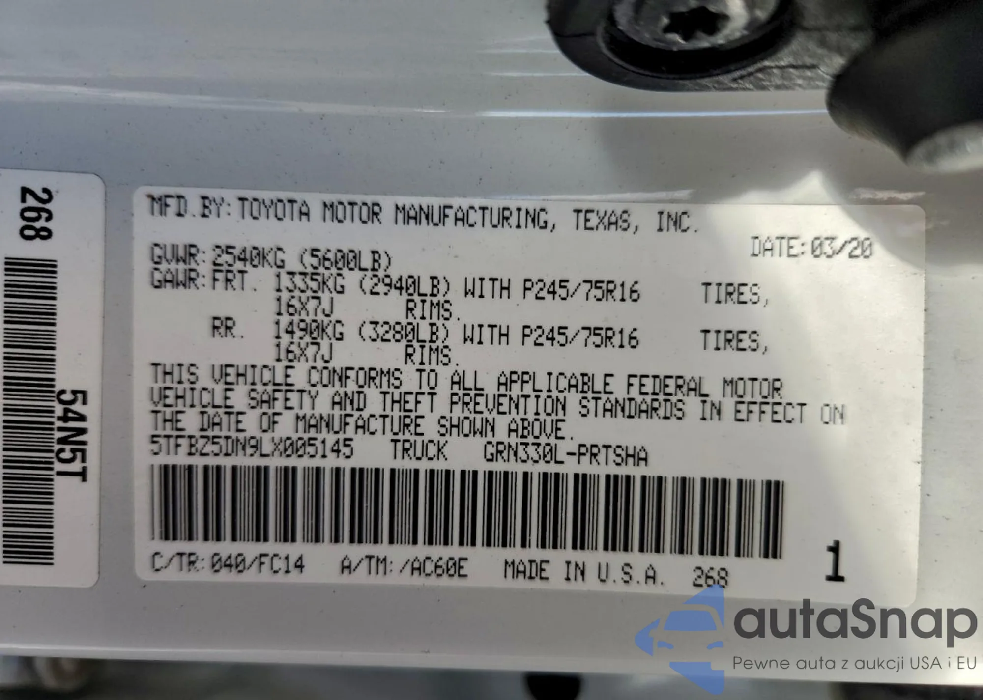 • VIN 5TFBZ5DN9LX005145