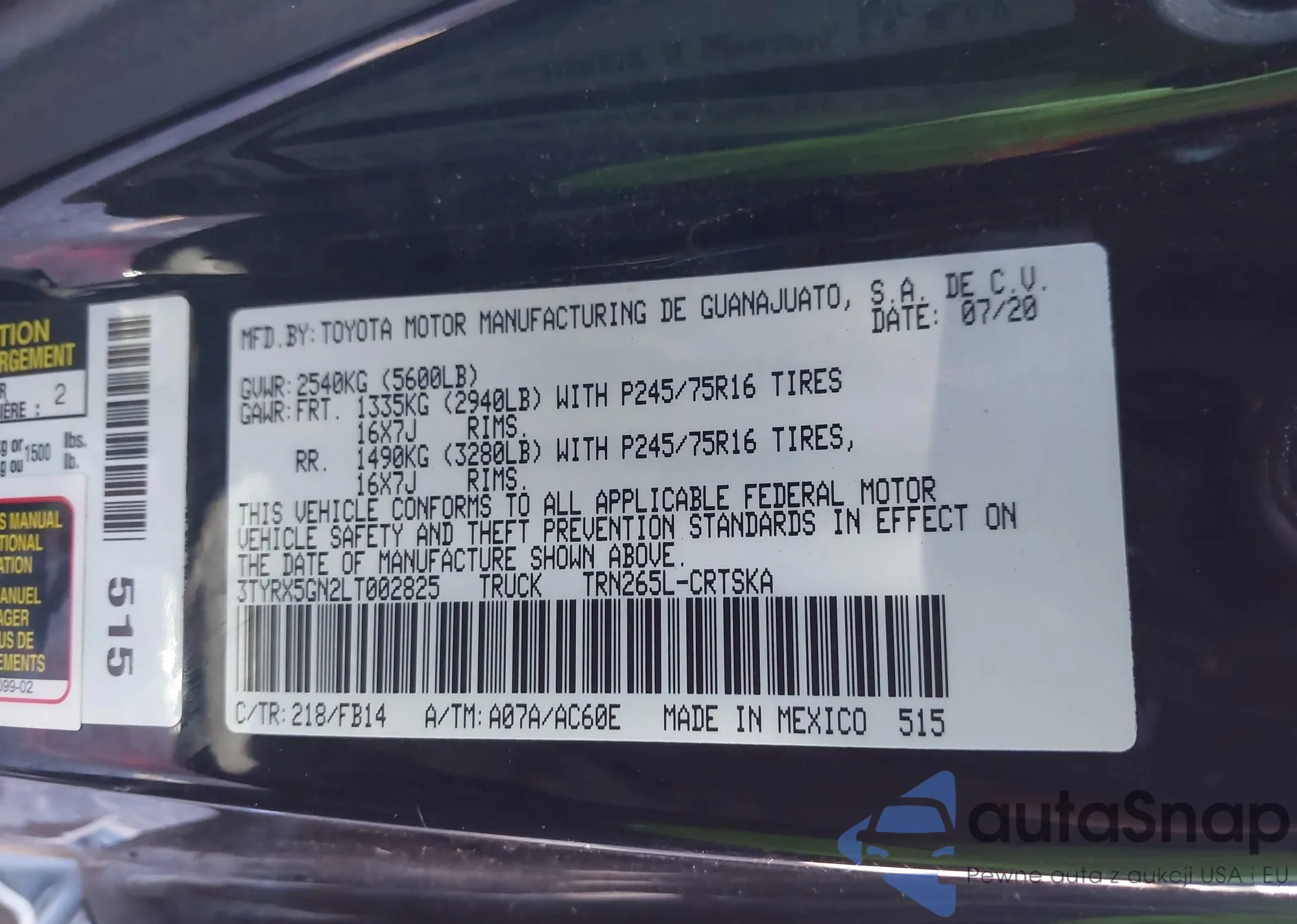 LOT: 44133185 VIN: 3TYRX5GN2LT002825