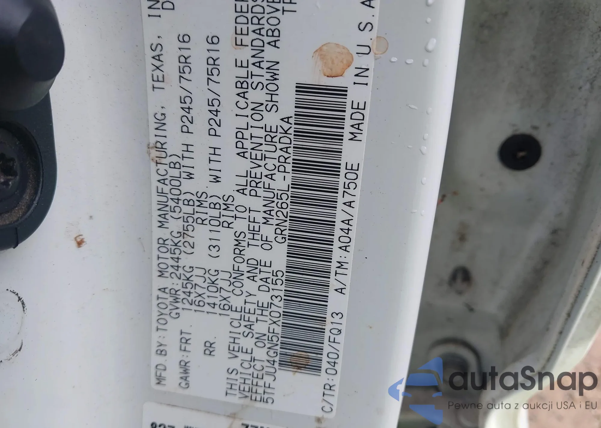 • VIN 5TFJU4GN5FX073155