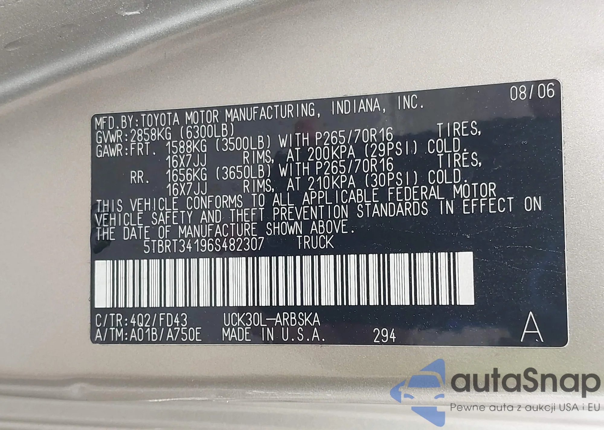 • VIN 5TBRT34196S482307