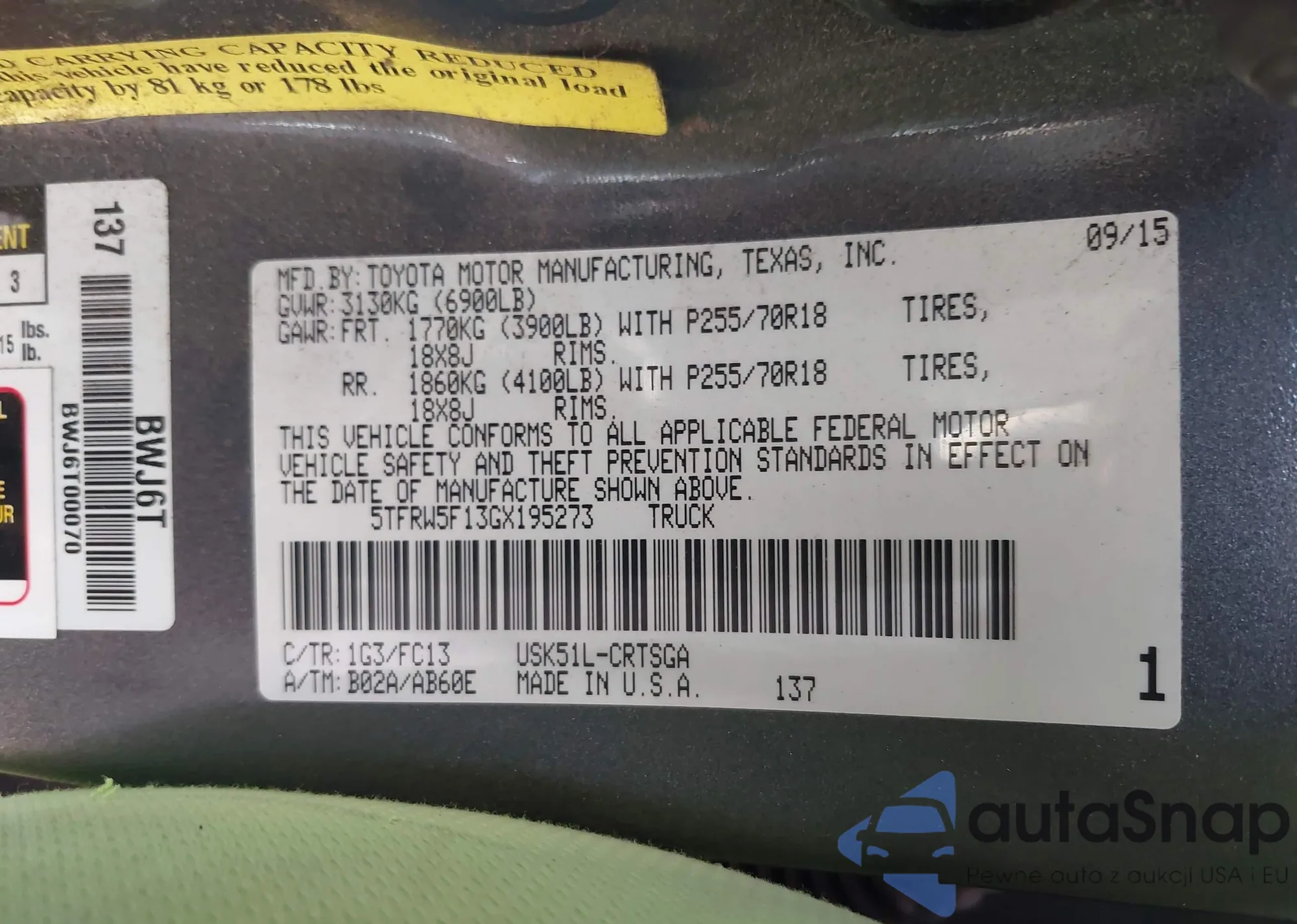 • VIN 5TFRW5F13GX195273