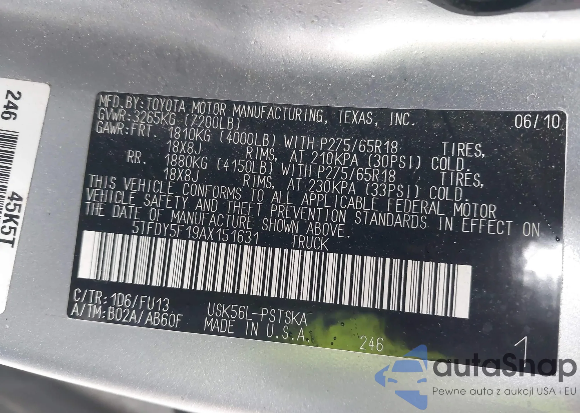 LOT: 44507160 VIN: 5TFDY5F19AX108620