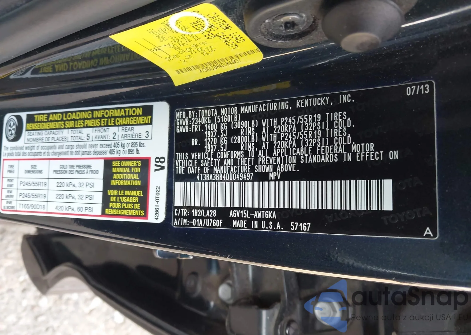 LOT: 44099567 VIN: 4T3BA3BB4DU049497
