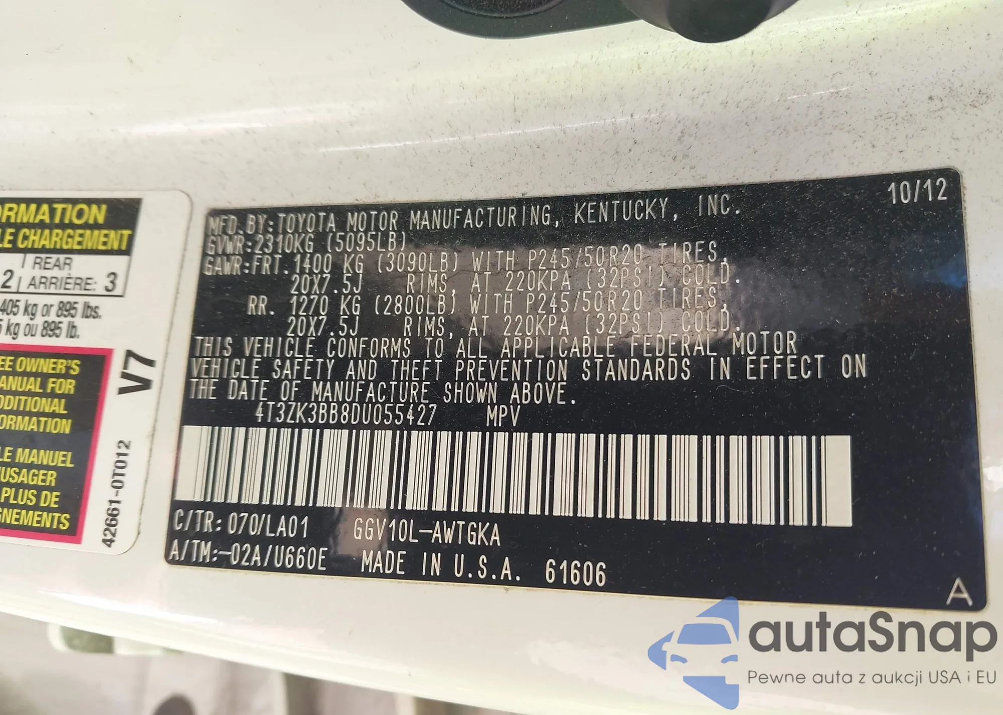 • VIN 4T3ZK3BB8DU055427