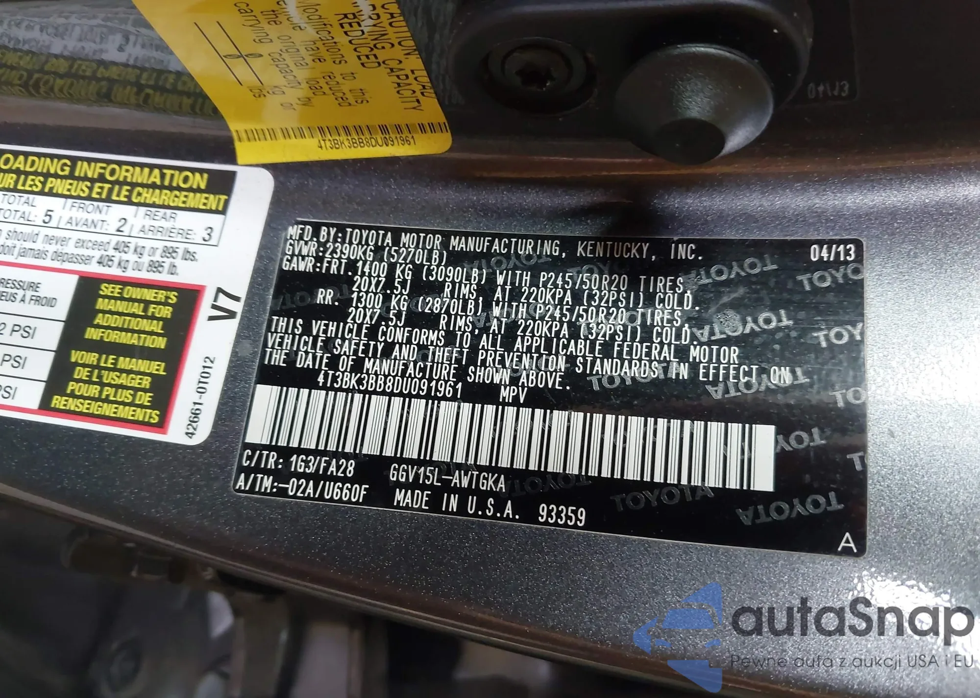 LOT: 43920856 VIN: 4T3BK3BB8DU091961
