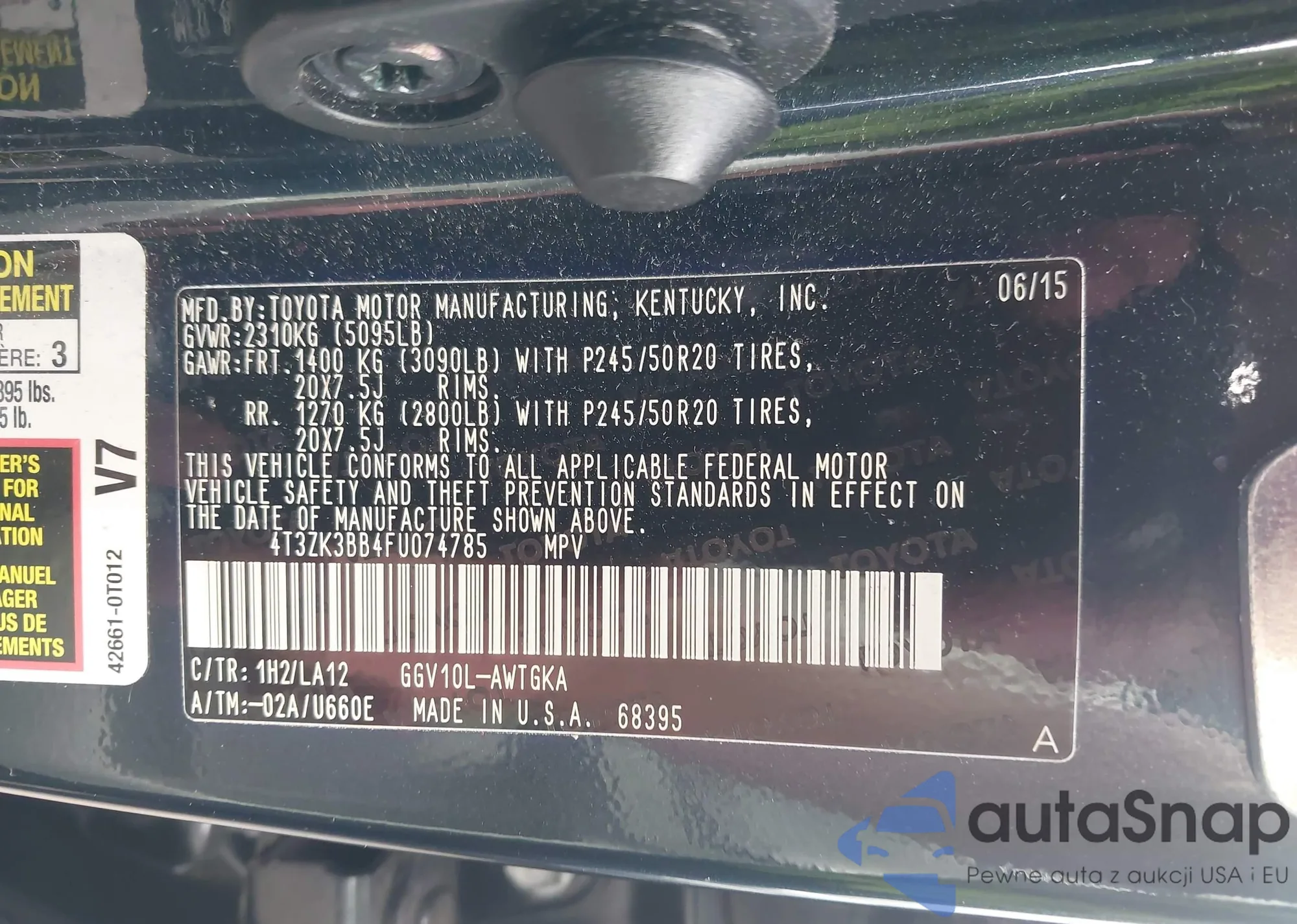 • VIN 4T3ZK3BB4FU074785