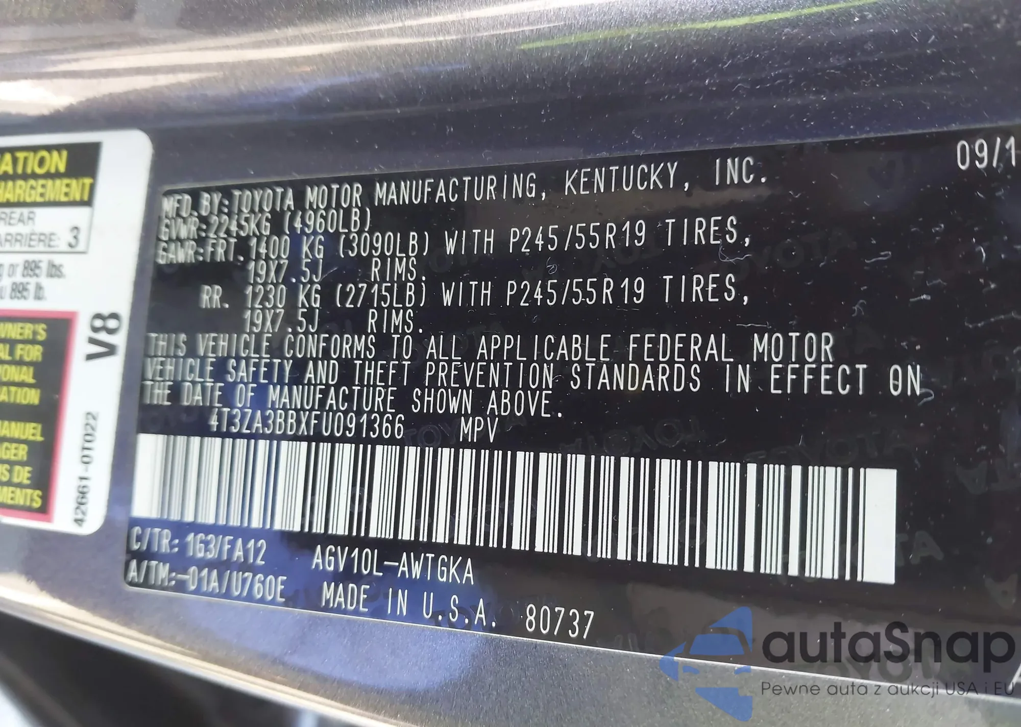 • VIN 4T3ZA3BBXFU091366