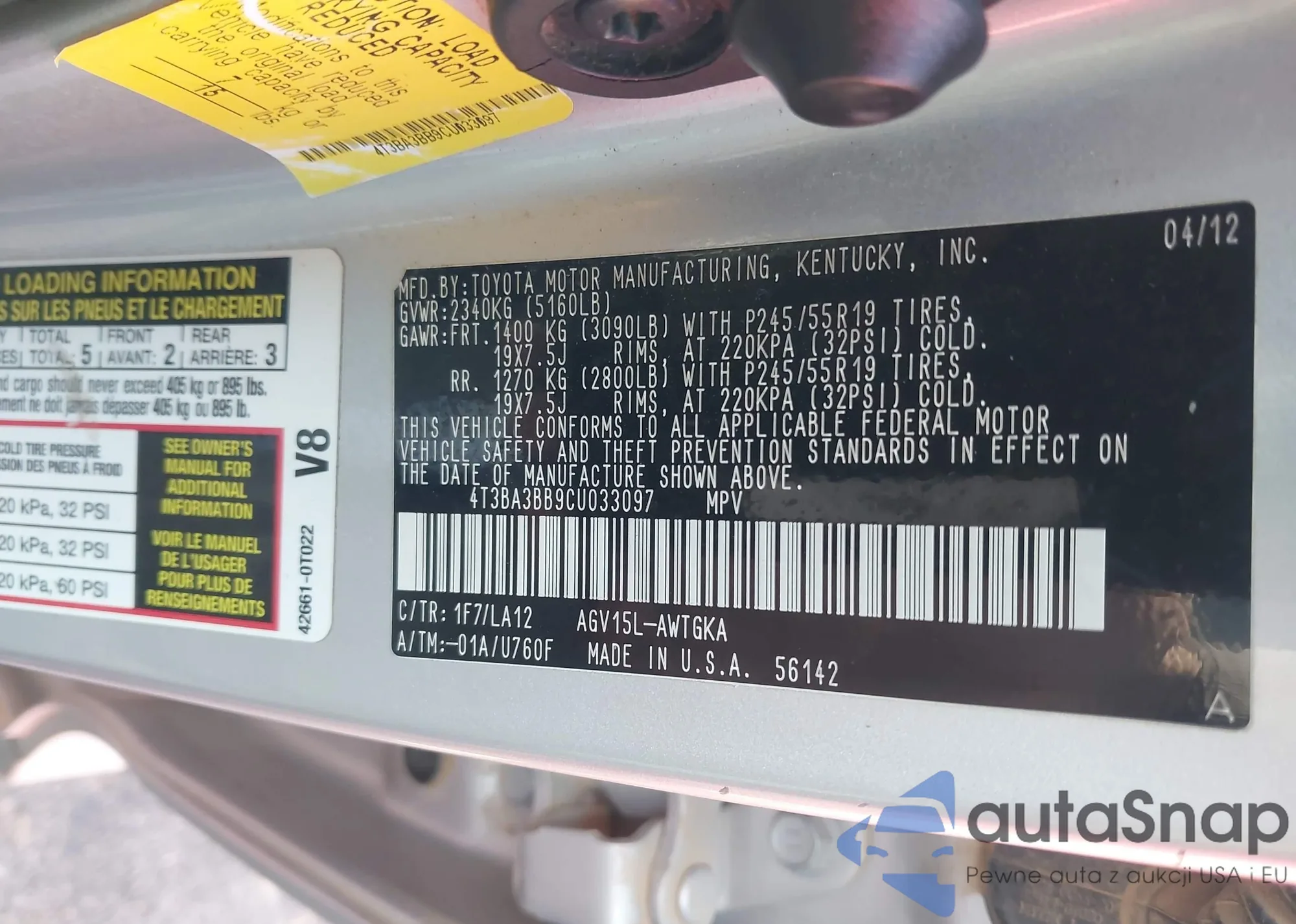• VIN 4T3BA3BB9CU033097
