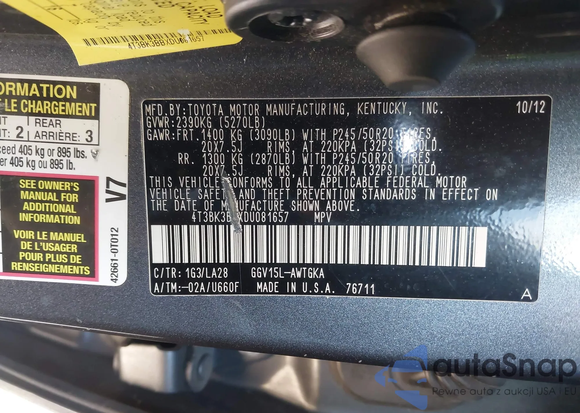 • VIN 4T3BK3BBXDU081657