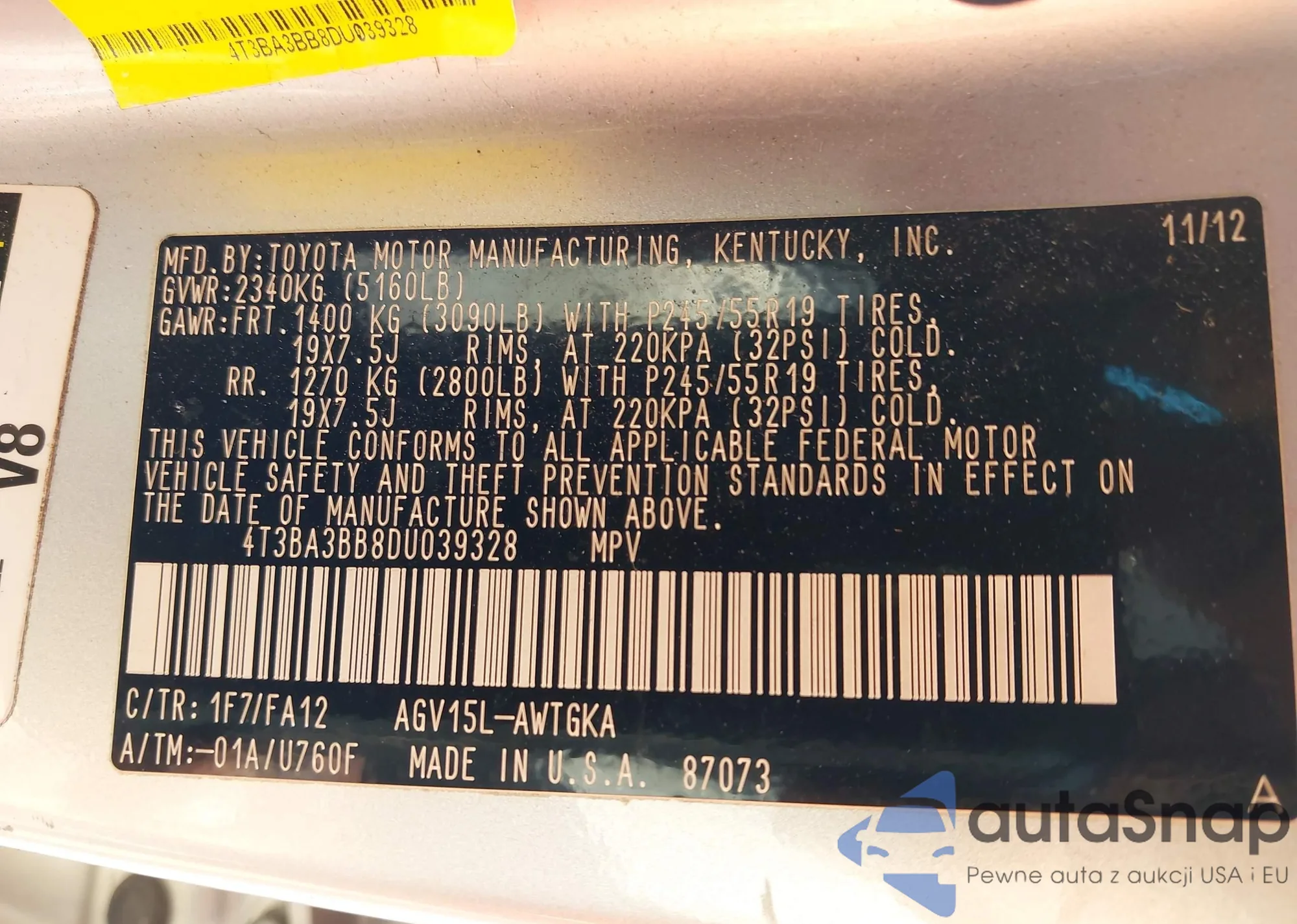 • VIN 4T3BA3BB8DU039328