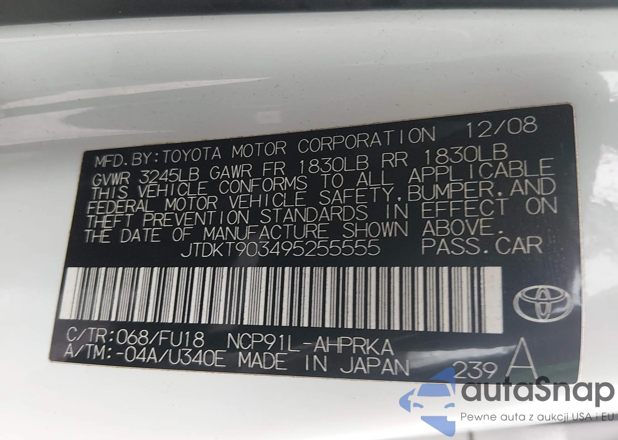 LOT: 79919085 VIN: JTDJT923775066453