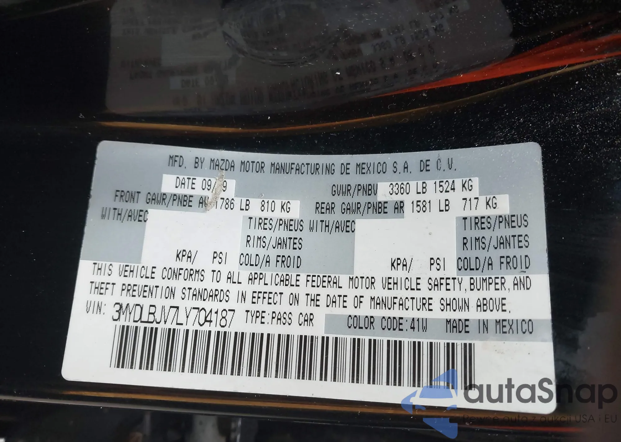 LOT: 43361577 VIN: 3MYDLBJV7LY704187