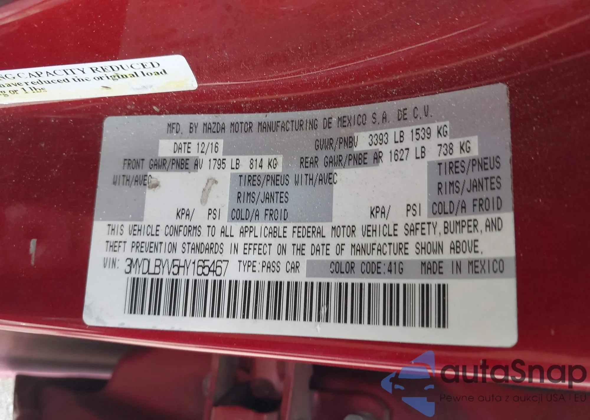 • VIN 3MYDLBYV5HY165467