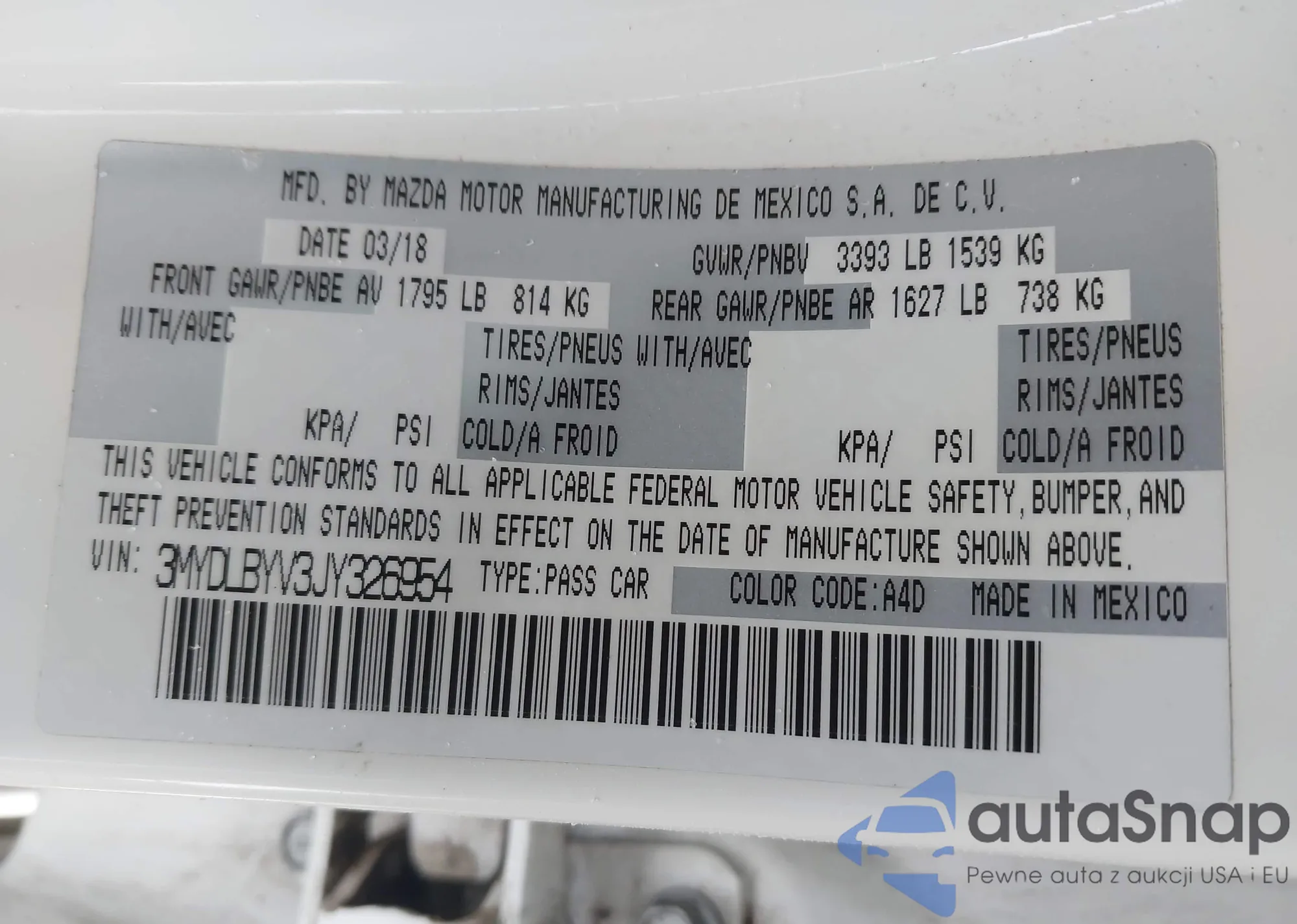 • VIN 3MYDLBYV3JY326954