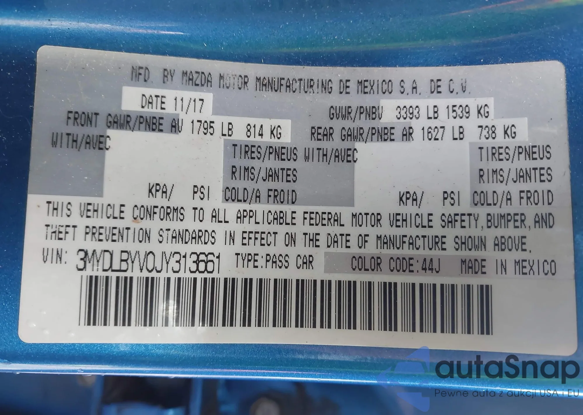 • VIN 3MYDLBYV0JY313661
