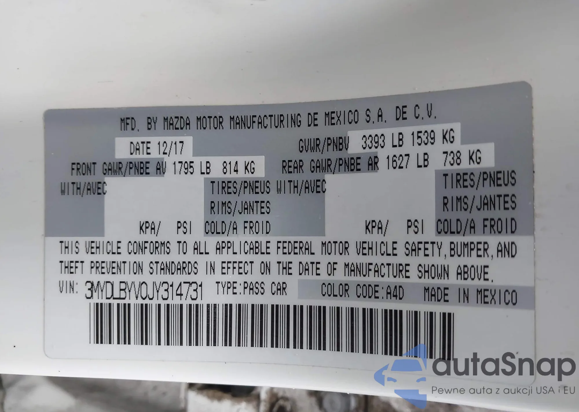 • VIN 3MYDLBYV0JY314731