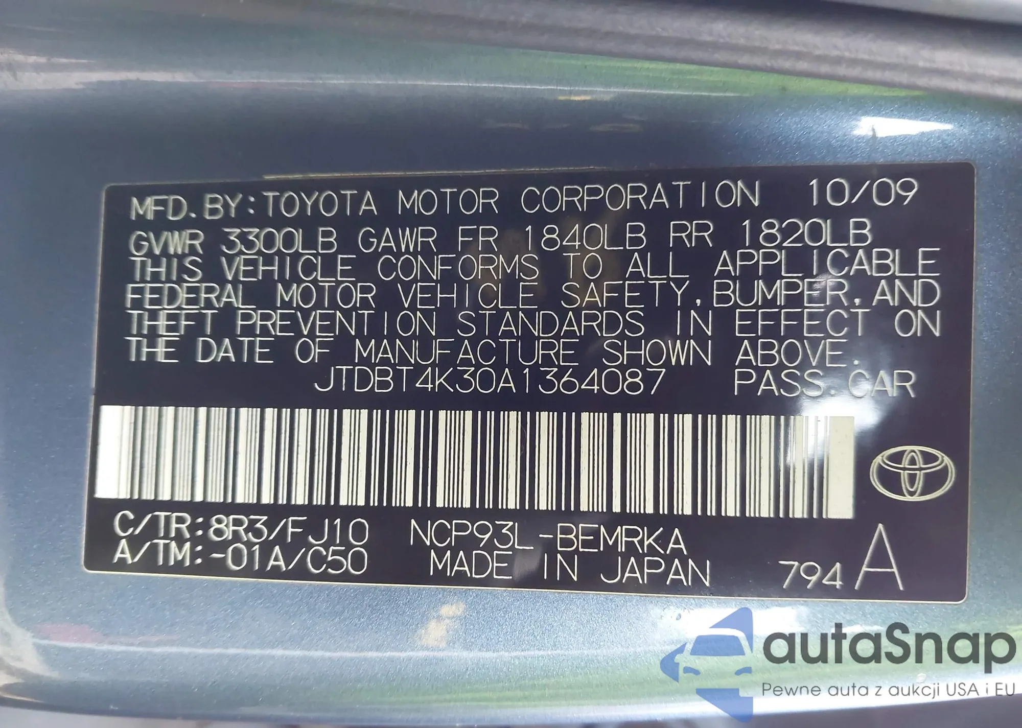 LOT: 44494946 VIN: JTDBT4K33A4063201