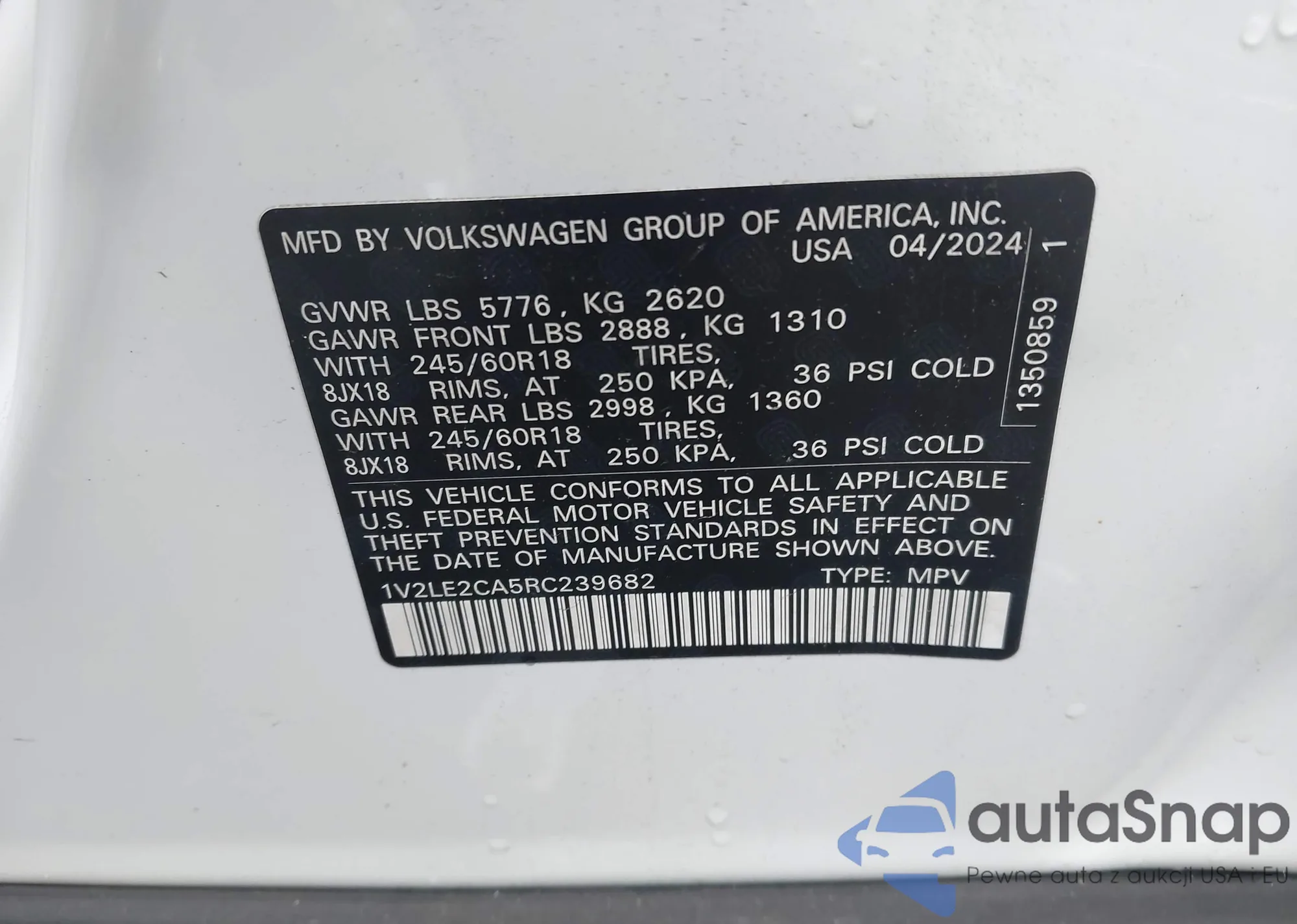 • VIN 1V2LE2CA5RC239682