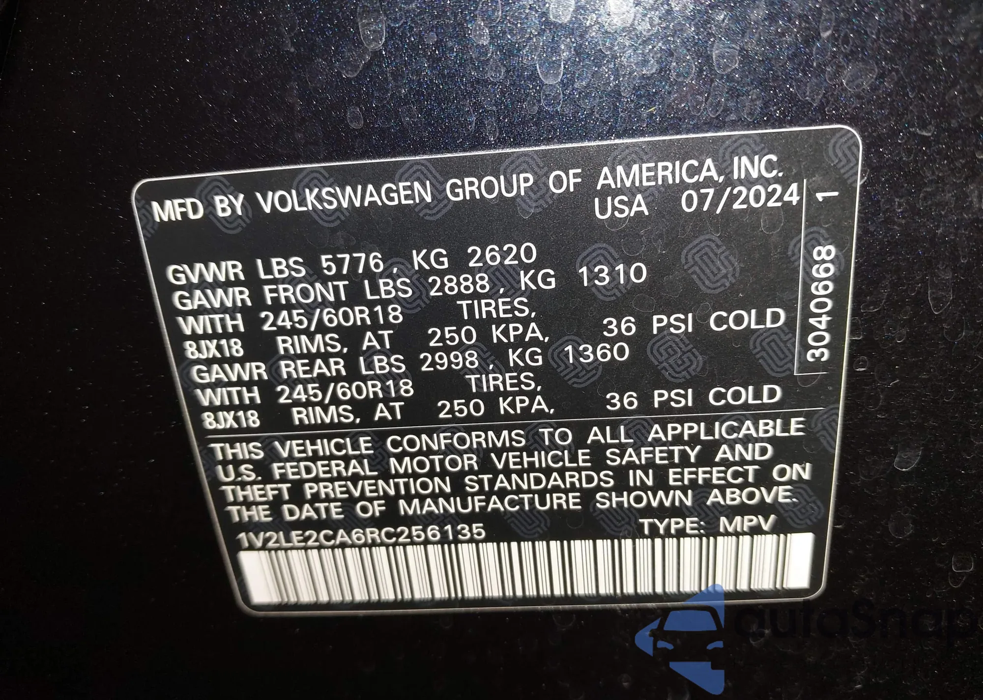 • VIN 1V2PE2CA8MC240075