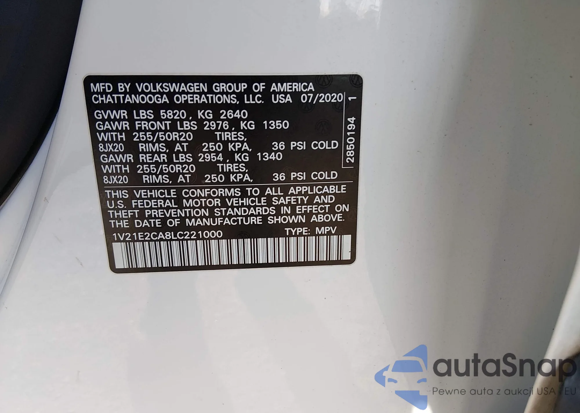• VIN 1V21E2CA8LC221000