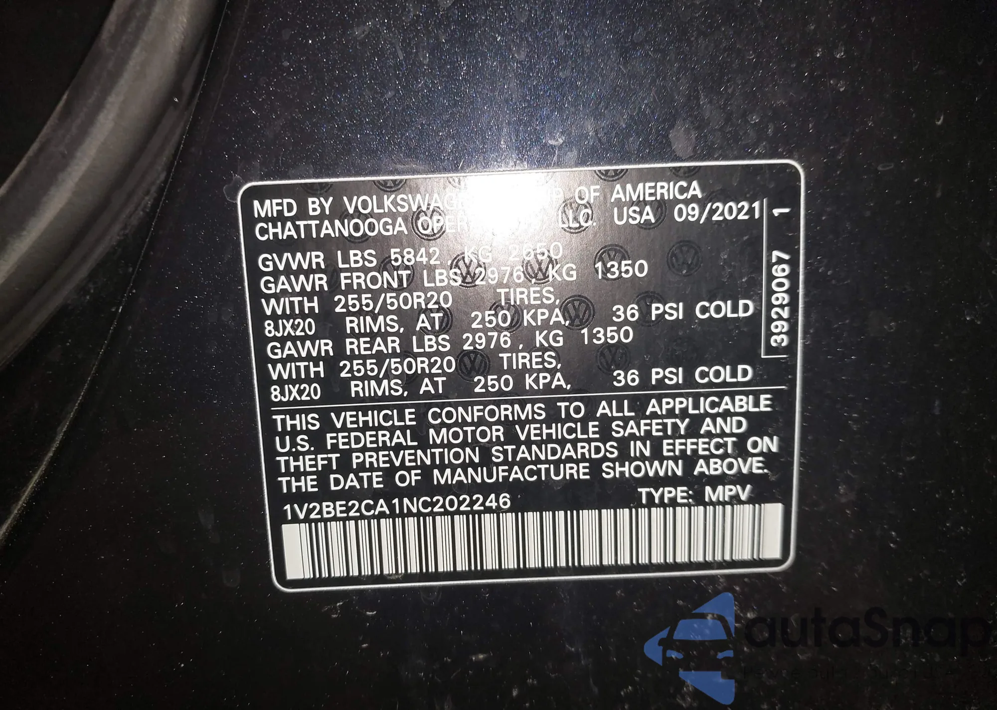 • VIN 1V2KE2CA5NC210883