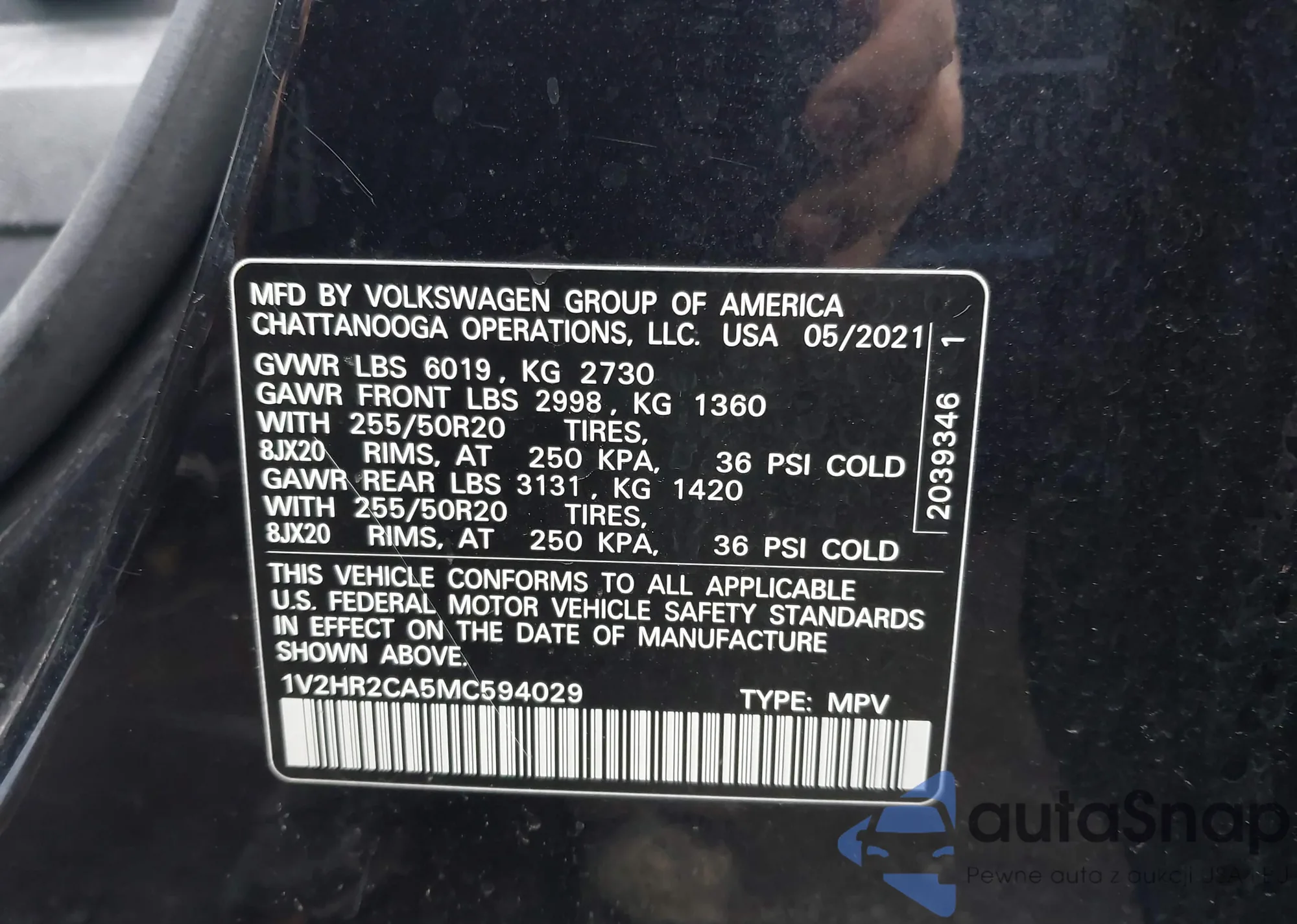 • VIN 1V2HR2CA5MC594029