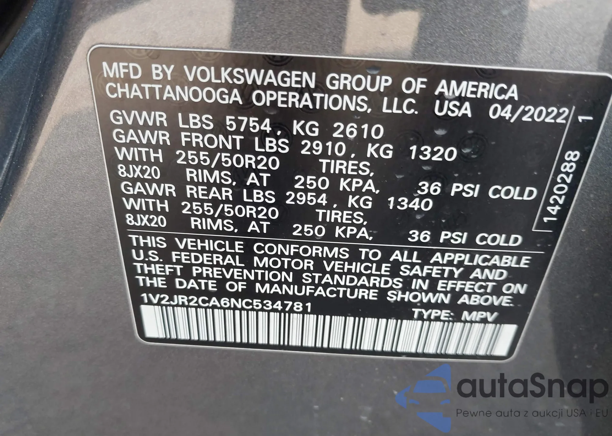 • VIN 1V2JR2CA6NC534781