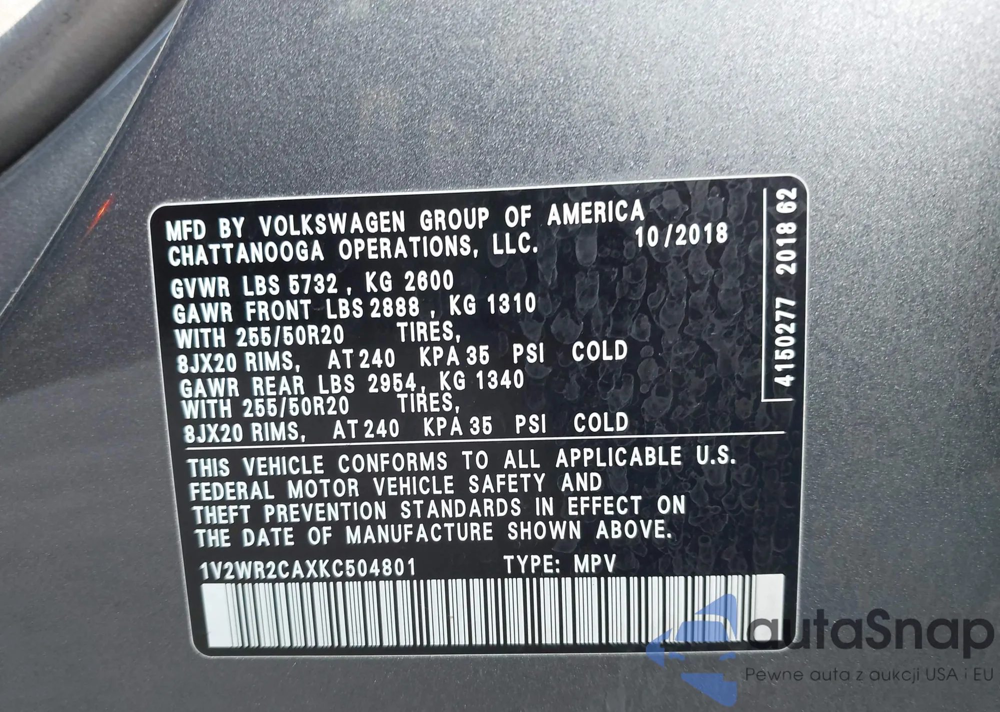 • VIN 1V2WR2CAXKC504801