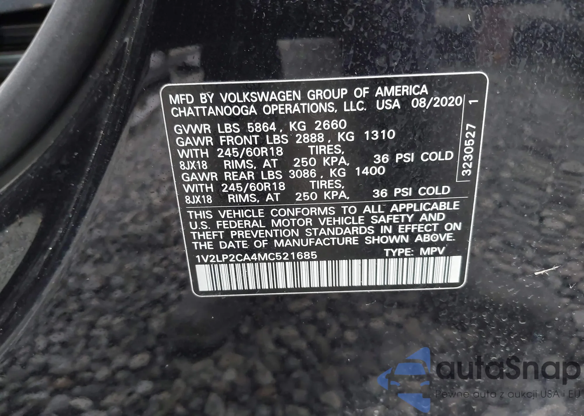 LOT: 44259488 VIN: 1V2LP2CA4MC521685