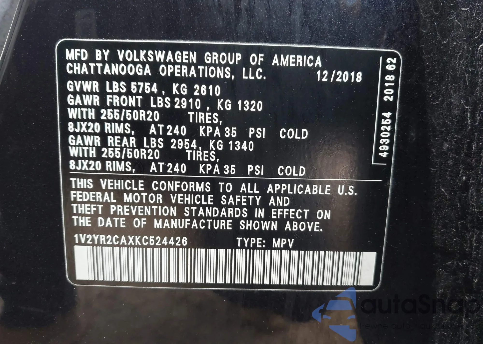• VIN 1V2MR2CA5KC597055