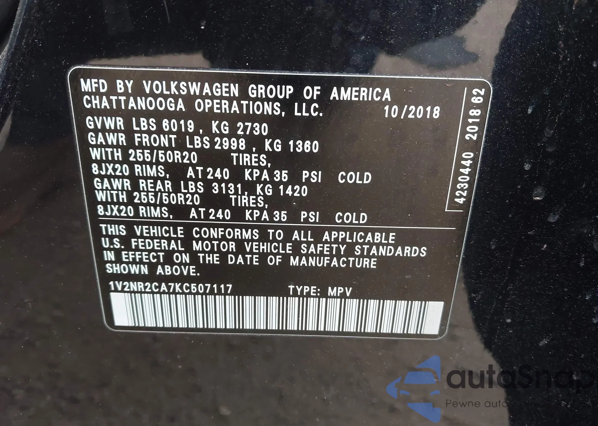 • VIN 1V2NR2CA7KC507117