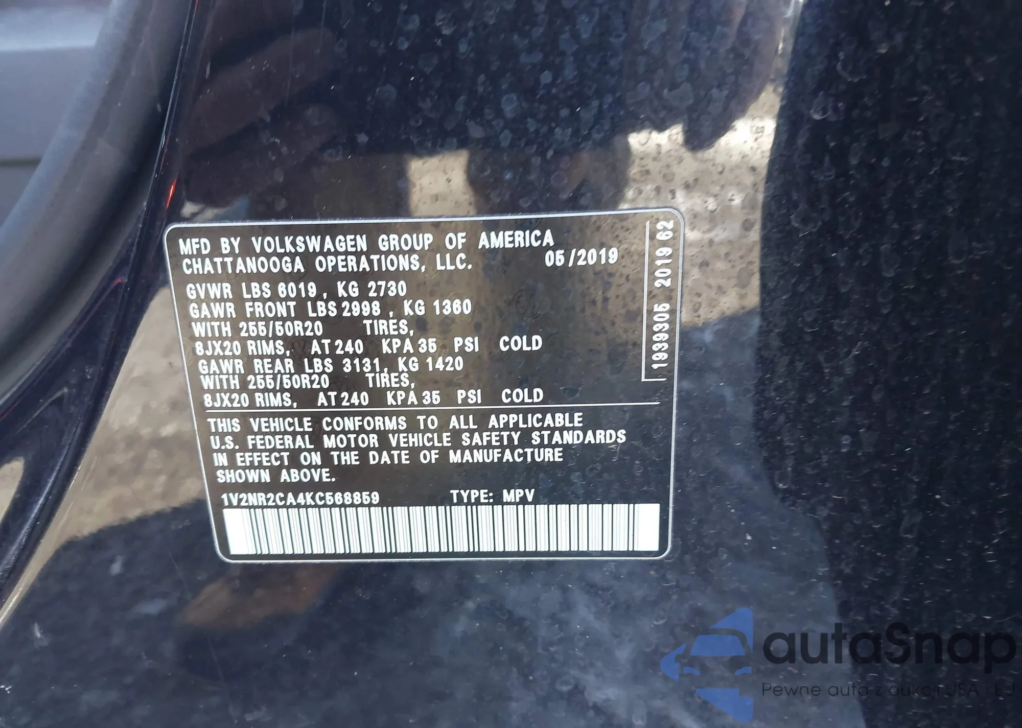 • VIN 1V2NR2CA4KC568859